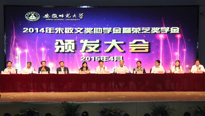 )崇德敬文,如灯似塔引领学子梦;感恩荣芝,似水比泉映照师大情。4月28日上午,朱敬文教育基金会主席朱恩馀先生、荣芝基金会负责人张瑞芝女士、荣芝基金会代表张卓麒先生、佘绮玲女士一行专程来我校出席2014年朱敬文奖助学金、荣芝奖学金颁发大会。