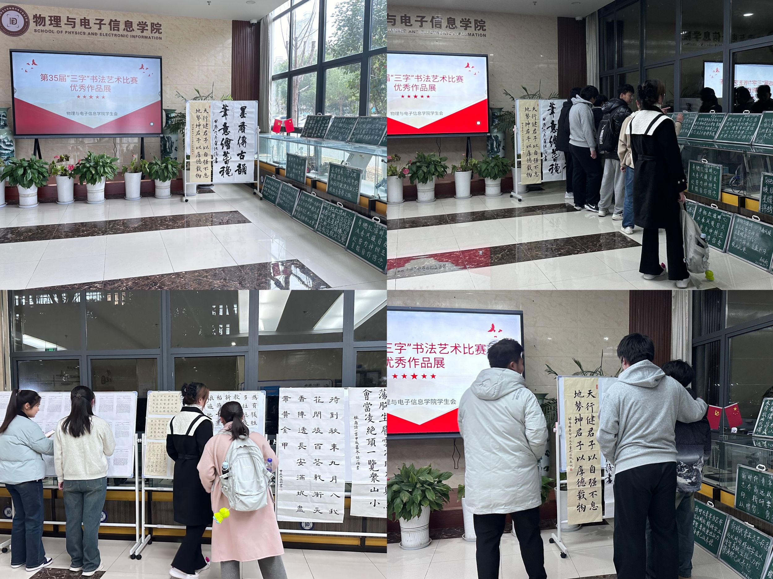 比赛以歌颂盛世华章和共绘文明校园为主题,在本次活动中,物电学子挥毫泼墨,于笔墨间传承文化自信,于书写中践行“六个文明”。经过三轮评比,最终选出一、二、三等奖若干。赛后,优秀作品布置于物电楼大厅,面向所有物电师生展出,并集中组织低年级师范生进行观摩学习。