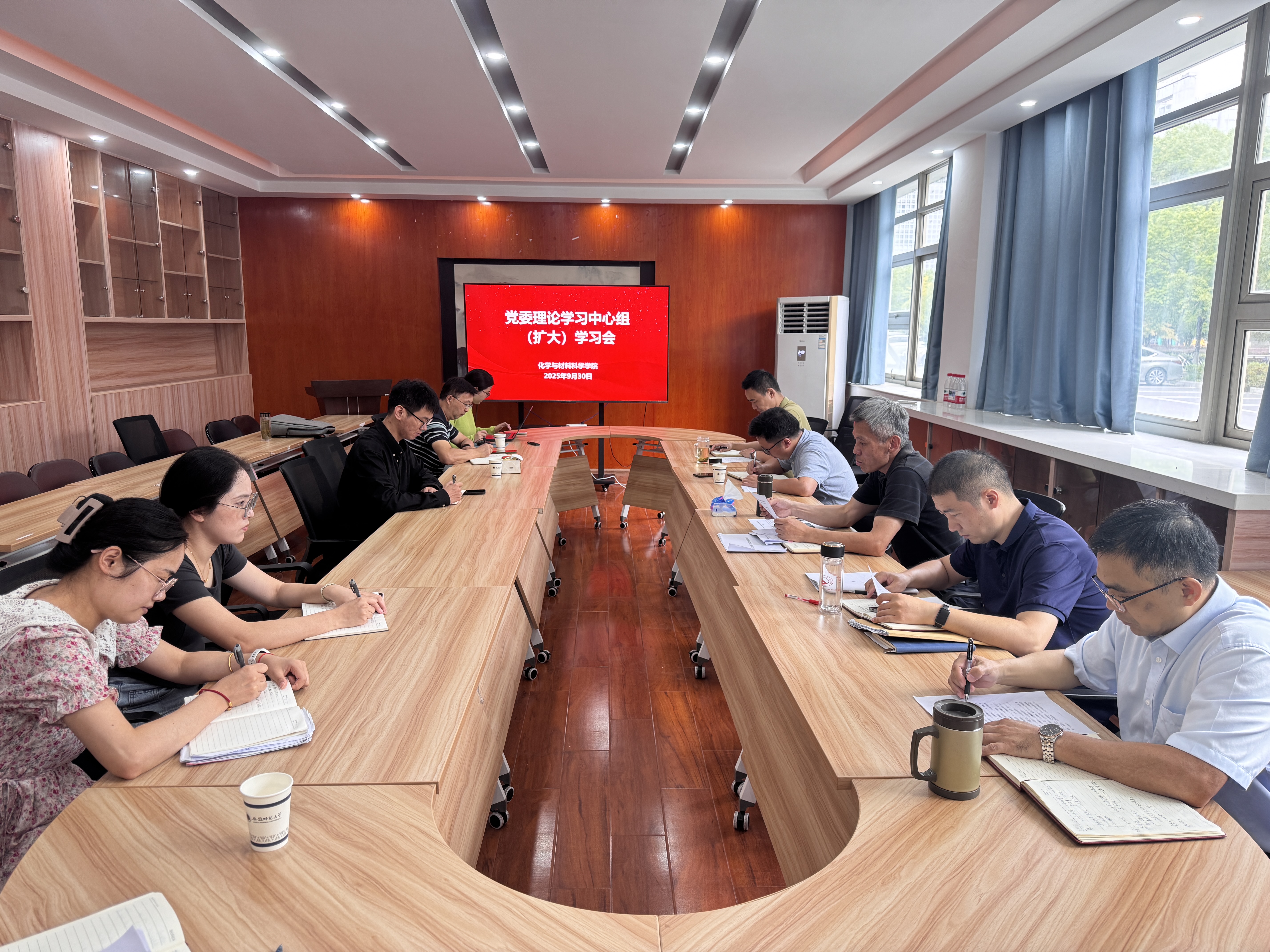 9月30日上午,化材学院在学苑南楼6号楼106会议室召开党委理论学习中心组(扩大)学习会,深入学习贯彻习近平总书记最新重要讲话和重要指示精神,专题研学《习近平谈治国理政》第五卷,研究部署国庆节假期重点工作。学院党委委员、班子成员、部分党支部书记参加会议。会议由院党委书记梁齐军主持。