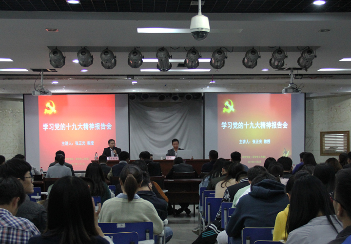 本网讯(校研究生会新闻中心 吴素娟 孙丽萍 曹清)不忘初心,牢记使命。11月2日晚,党委研究生工作部邀请马克思主义学院张正光教授作了题为《切实学懂弄通做实党的十九大精神,奋力开创新时代中国特色社会主义美好未来》的报告,各学院研究生秘书、兼职辅导员、校院两级研究生会学生干部参加了学习。报告会由党委研工部副部长步献新主持。