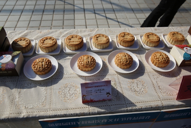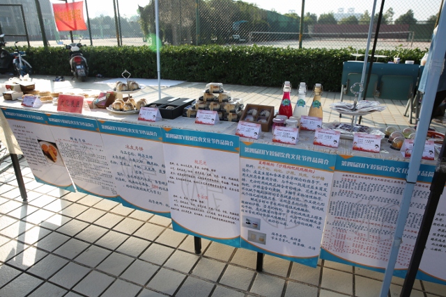 今年的“DIY校园饮食文化节”设置了文化、特色、常规三个展区,共展出糖果制品、水果制品、月饼、糕点、酒水、饮料、饼干、面包、果脯、罐头、酸奶等10余类35种食品,呈现出三个方面的特点:校园文化与美食相结合、精美包装与美食相结合、专业创新与美食相结合。