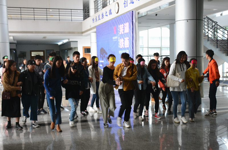 1023日,院学生会心理健康部联合院学生发展辅导站,举办“信任之旅——盲行”大型团体辅导活动。在老师的指导下,设定好路线,2人一组,一人戴上眼罩,充当“盲人”,一人充当“拐杖”,同伴之间只能用肢体语言来交流,不能用言语交谈。一轮结束,“盲人”和“拐杖”再相互交换角色。结束“盲人体验”后,大家轮流分享自己当“盲人”和“拐杖”的心得,认为有人陪伴的感觉非常温暖,信任是最好的交流。本次活动赢得了参与同学的一致好评,同学不仅收获了快乐的体验,同时培养了彼此信任、团结互助的品质。