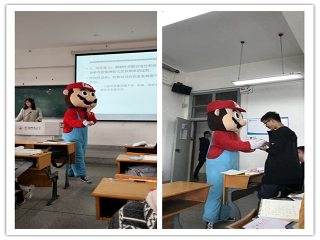 舞动课间由大学生心理研究协会举办的一个常规性活动,主要内容是心研工作人员穿上卡通道具服做一些小游戏娱乐大家或分发小糖果以活跃课间气氛,其主要目的是帮助学生缓解压力放松心情,在课间短短的二十分钟内,给同学们带来心灵上愉悦。同学们也表示,希望舞动课间的活动可以持续下去,使得课堂紧张的气氛得以舒缓。