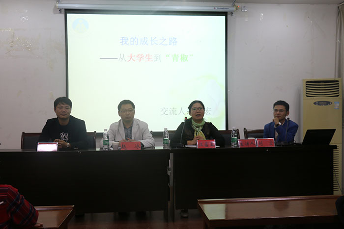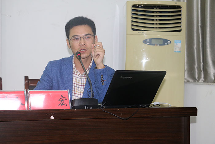 汪盛玉副院长首先向新生们介绍我院基本情况,对刘宏老师做了详细的介绍。随后,刘宏老师以我的成长之路——从大学生到“青椒”为题,介绍了自己从大学本科至博士阶段的学习经历与人生感悟。他通过“我是谁”、“谁是我”的设问,告诉大家“我就是我”。为了帮助同学们成为更好的自己,他对同学们提出两点建议,希望同学们在学习上能培养兴趣,在生活上能改变气质。他通过“我干了什么”,介绍了自己的奋斗经历,讲述了就业和考研的两种选择各自的几种可能性,为同学以后做选择提供参考。他还和同学们分享了自己读硕读博的感受,将“不论前路几曲折,我把天地做道场”赠送给同学们,期盼同学们能有美好的未来。最后,4位老师详尽且风趣地回答了同学们的提问,师生间进行了良好的交流。