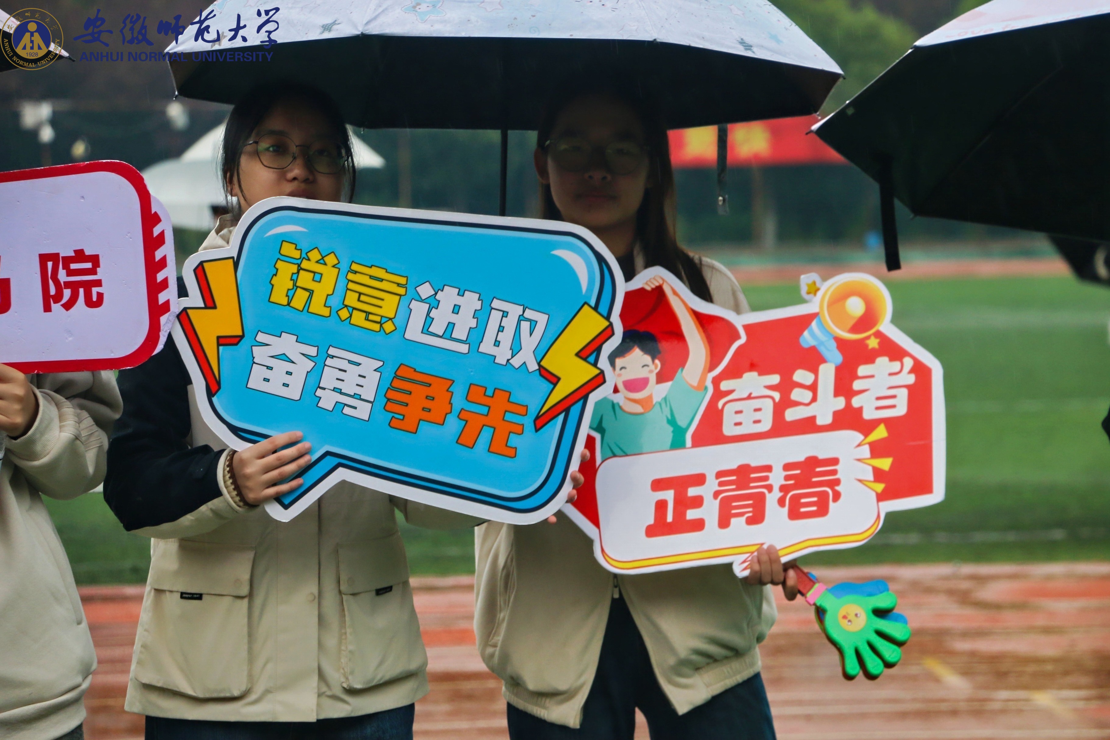 比赛当日,恰逢秋雨,运动员们的拼搏精神感染着在场的观众,他们的热情未减反增。历史学院2025级历史学(师范)专业的刘泽翔感慨道:“阴雨天气下,运动员仍然迎难而上,我对他们每一位都充满敬佩。”计算机与信息学院2025级人工智能专业的陈飞宇眼中闪着光:“看到自己学院的运动员在赛场上驰骋,我们随着鼓声,每一次呐喊都饱含团结精神,也点燃了自己的斗志。”