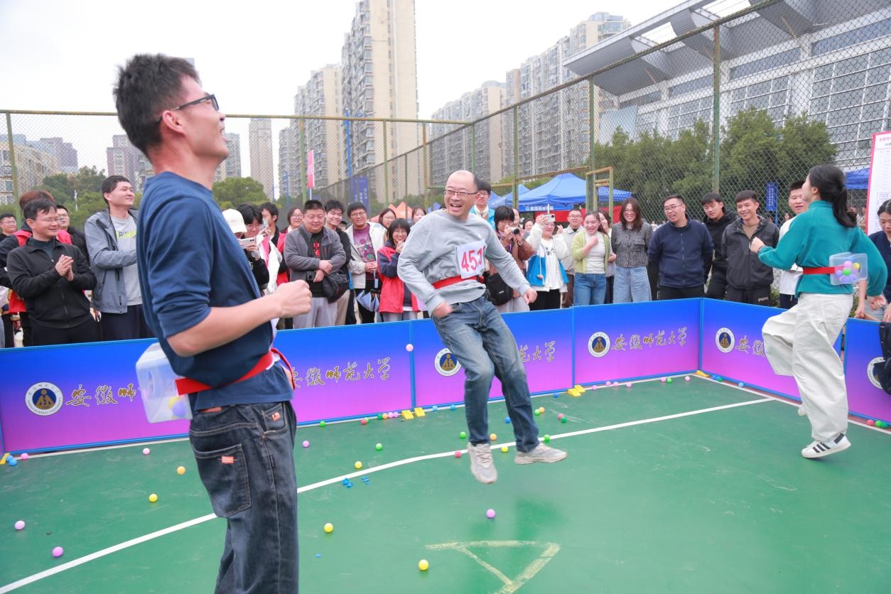 “快乐抖球”堪称全场“欢乐引擎”。老师们腰间绑着装满小球的盒子,通过扭动身体让小球掉落,有的跟着节奏左右摇摆,有的配合脚步上下跳动,偶尔出现的滑稽动作引得观众捧腹大笑。经过激烈角逐,生态与环境学院、机关、化学与材料科学学院分工会分别获得该项目前三名。