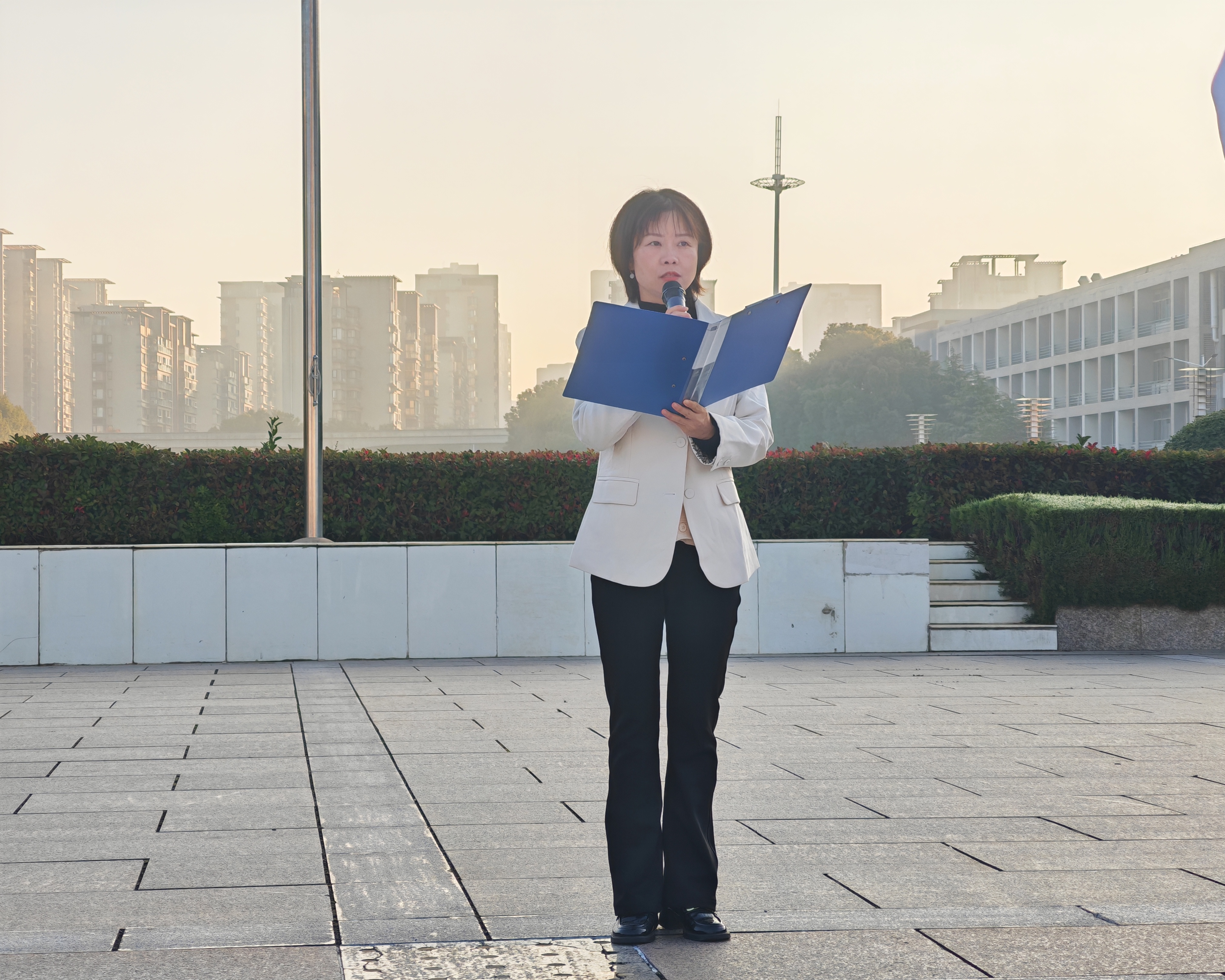 为加强学生的爱国主义教育,引导学生自觉践行社会主义核心价值观,培养学生的家国情怀,11月5日上午,外国语学院在花津校区敬文图书馆东侧广场开展了2025级本科新生“国旗下的思政课”主题教育。英语系教师乔媛、2025级辅导员、2023级英语(师范)专业本科生崔彤彤同学以及2025级全体本科生参加此次活动。活动由学院党委副书记章姗姗主持。