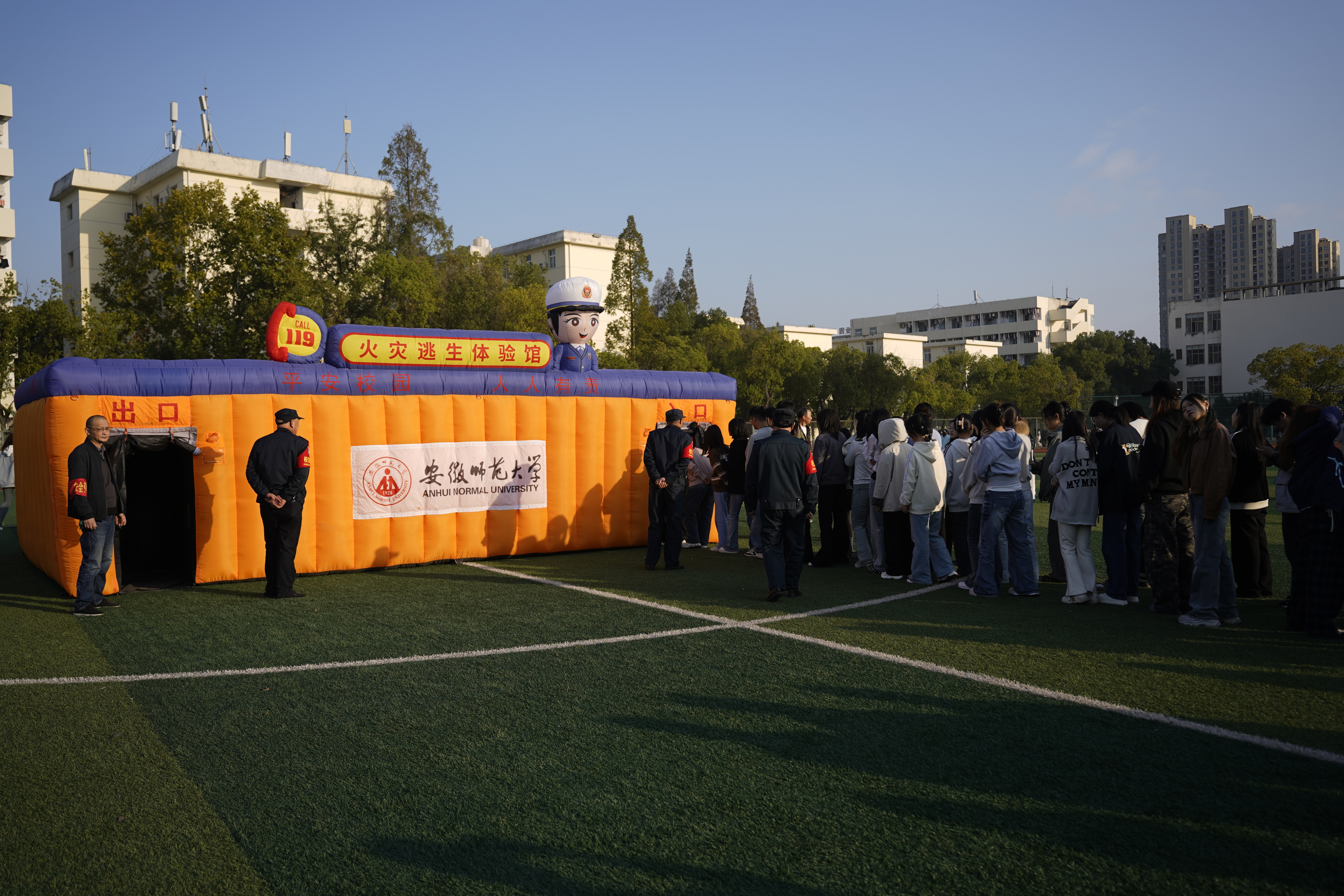 随后,学生分组有序进入火灾逃生体验馆。馆内模拟火灾现场浓烟弥漫、光线昏暗,真实还原了火灾发生时的复杂环境。在教官的指导下,大家在烟雾中辨别安全出口标识,克服心理恐慌,按照正确的逃生姿势和方法快速通过体验通道。沉浸式的体验让师生们更直观地感受火灾危害,进一步巩固了火灾逃生技巧。