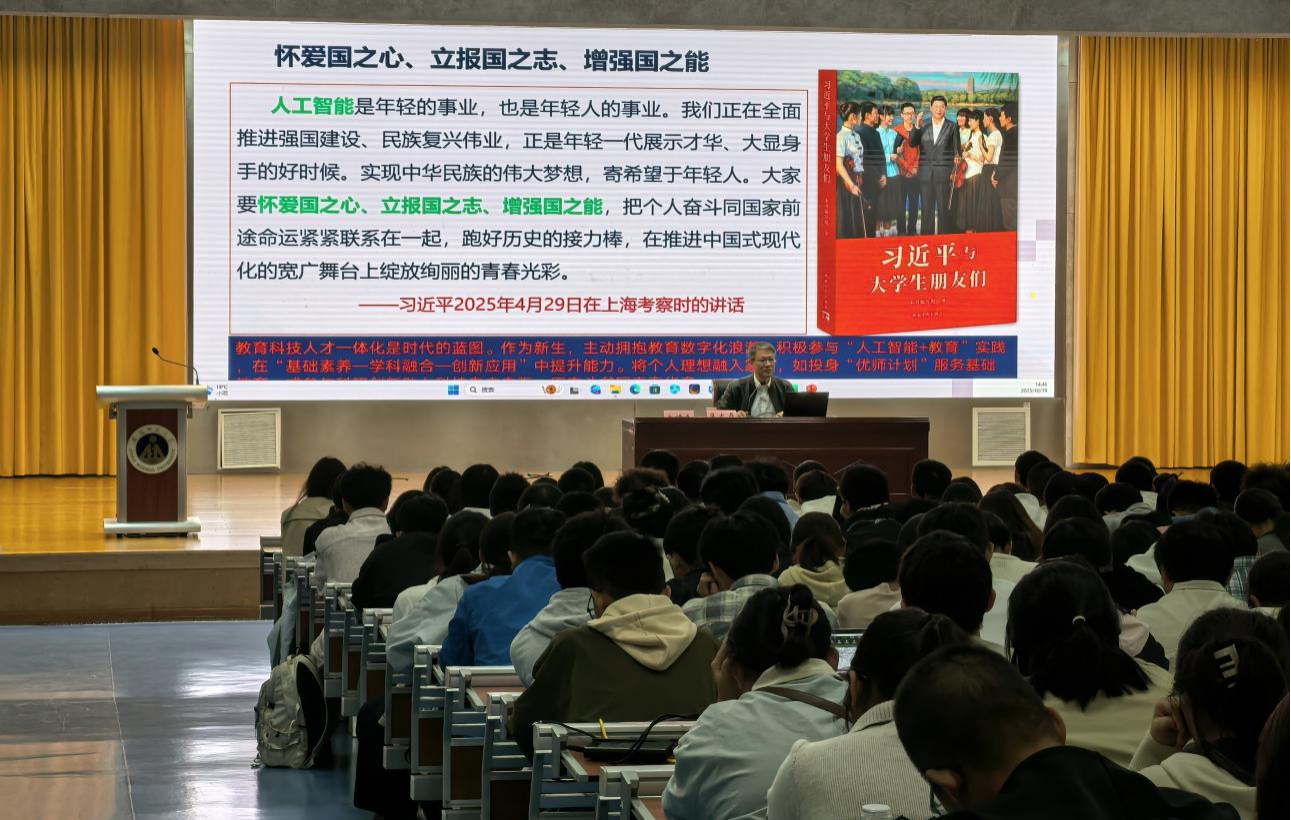 本科生院院长崔光磊以“乘可为之势,做有为快乐师大学子” 为题开展报告,从“为人”“为生”“为学” 三个维度为新生构建成长框架,在“为人” 层面,倡导新生践行 “厚德、重教、博学、笃行” 校训,树立远大理想,将个人发展融入国家战略,争做有志向、有担当的青年;在“为生”层面,聚焦校纪校规、宿舍管理、时间规划等实际问题,指导新生合理安排生活,筑牢成长基础;在“为学”层面,鼓励新生培养学术钻研精神,敢于挑战难题、参与实践,在探索中练就过硬专业本领。