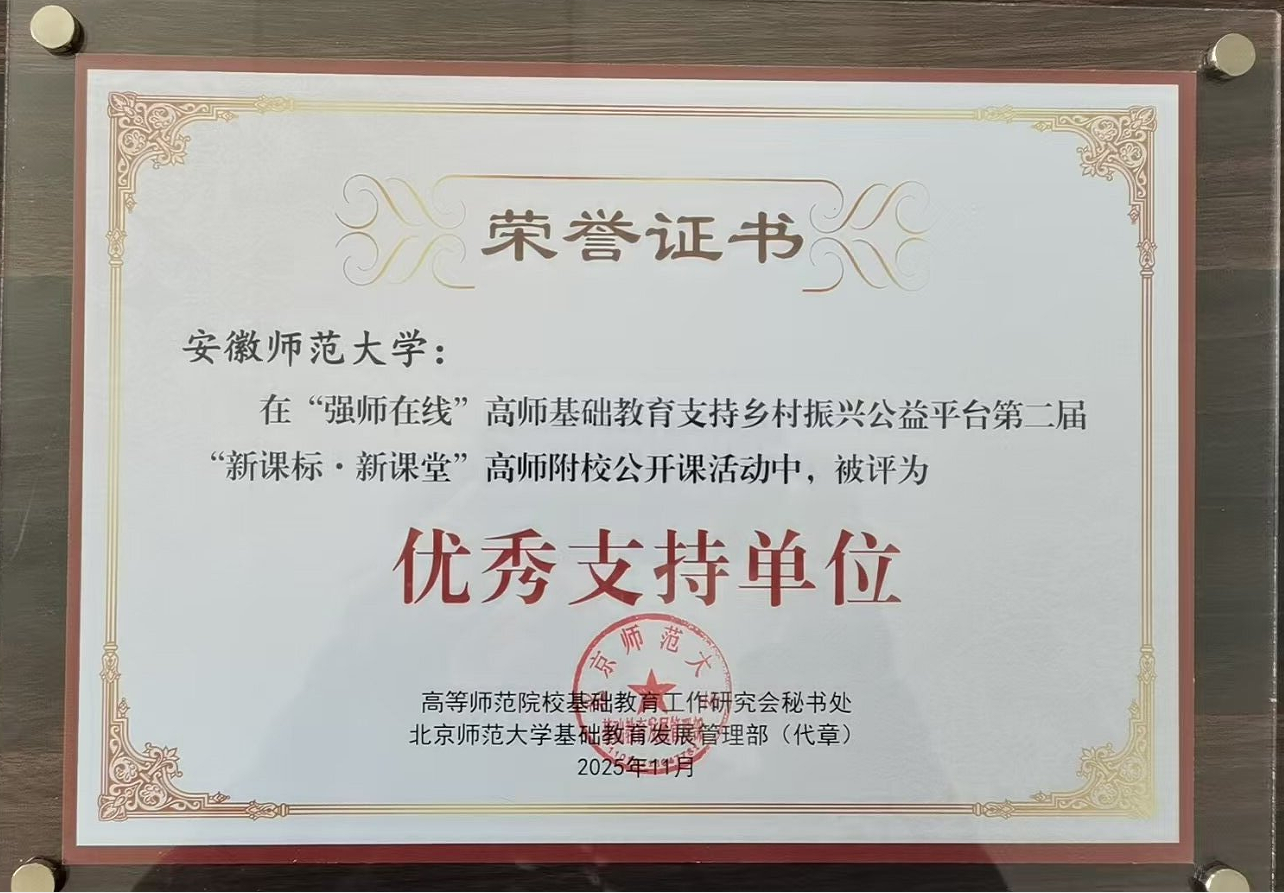 我校获评“强师在线”高师基础教育支持乡村振兴公益平台“优秀支持单位”