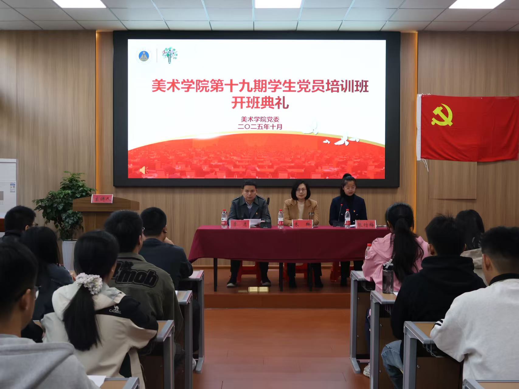 10月29日下午,美术学院第十九期学生党员教育培训班开班典礼在美术学院A107报告厅举行。院党委书记、分党校校长朱琳,院党委副书记李进、全体辅导员以及党支部书记参加了开班典礼。培训班全体学员参加此次典礼。开班典礼由培训班班主任张竹梅主持。