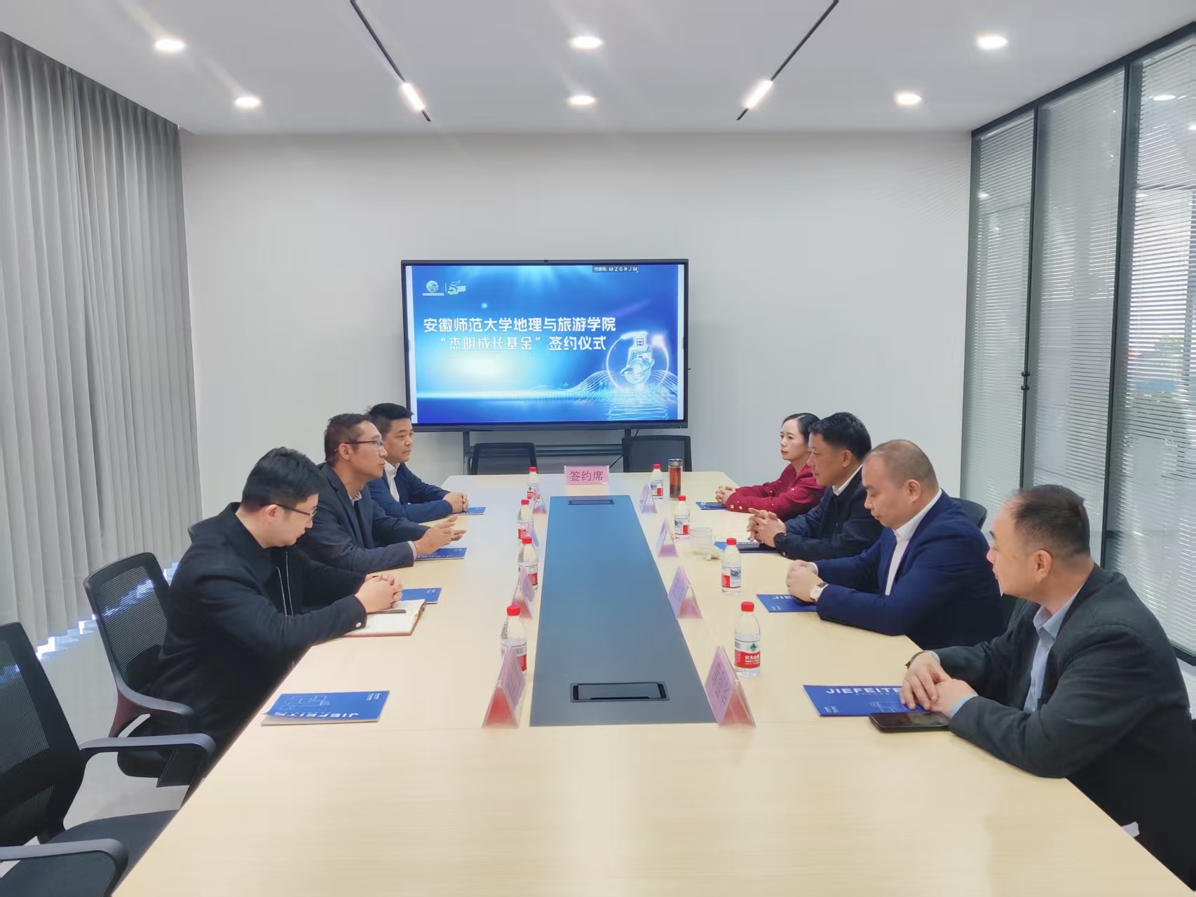 11月15日,地旅学院党委书记张顺、党委副书记钱程、旅游管理专业负责人尹寿兵等一行赴安徽杰菲特包装科技有限公司举行“杰明成长基金”签约仪式,并就校企合作促就业进行交流。太湖县副县长李盛华、县委组织部副部长储丽莎,安徽杰菲特包装科技有限公司董事长王结明等出席会议。