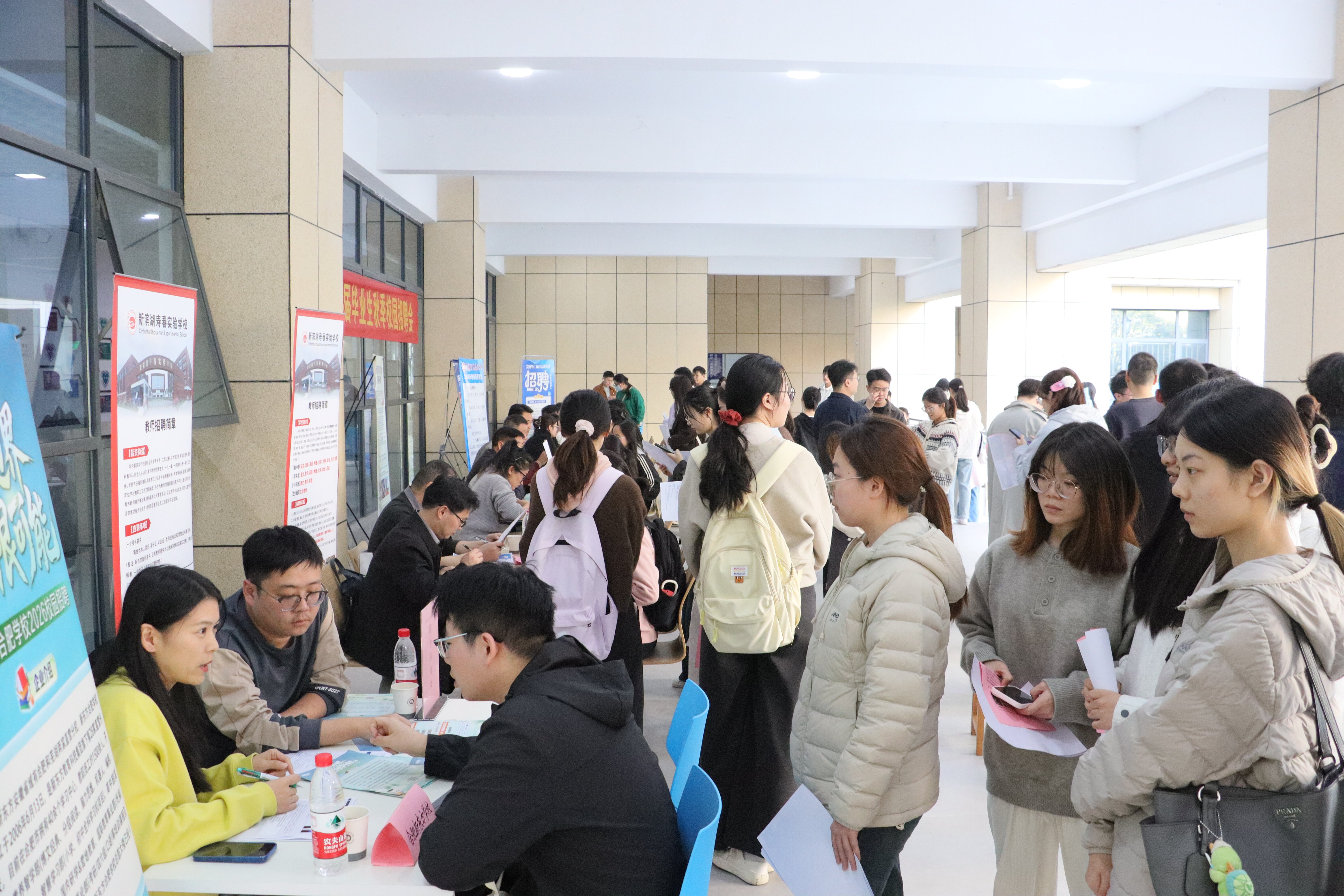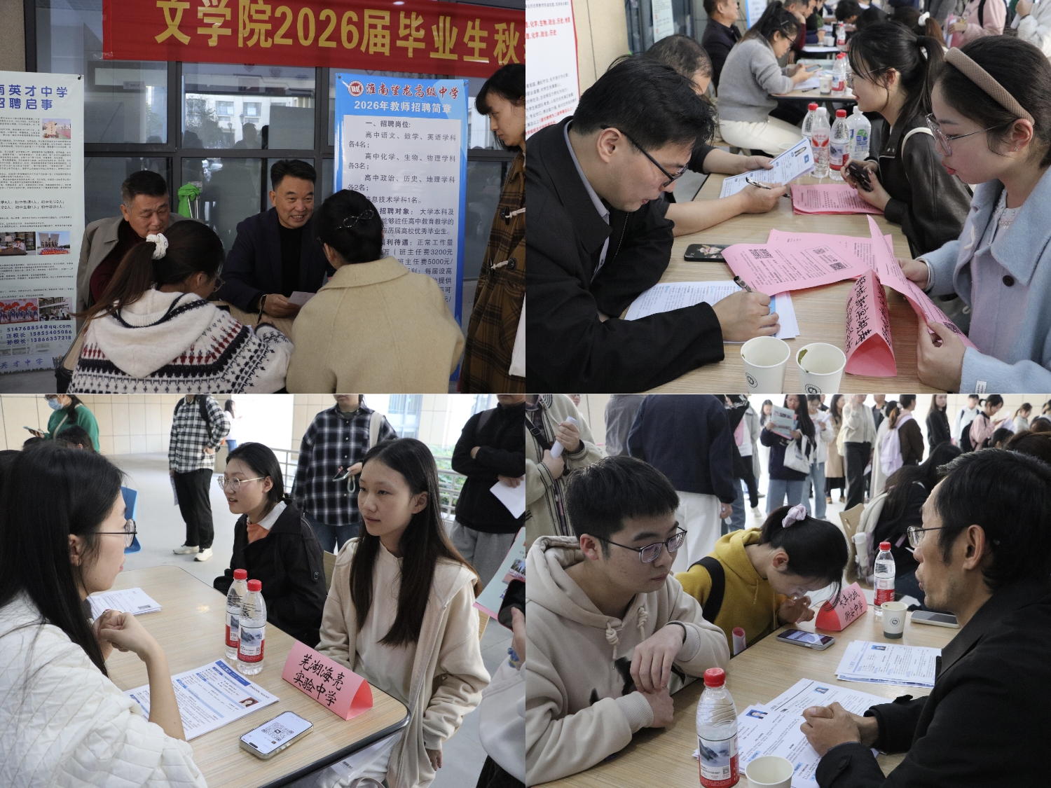 11月14日下午,文学院在文典楼西侧一楼举办2026届毕业生秋季校园双选会。本次招聘会吸引了来自合肥、芜湖、淮南等多地优质教育单位,提供岗位数200余个,涵盖语文、数学、英语、物理等多学科。