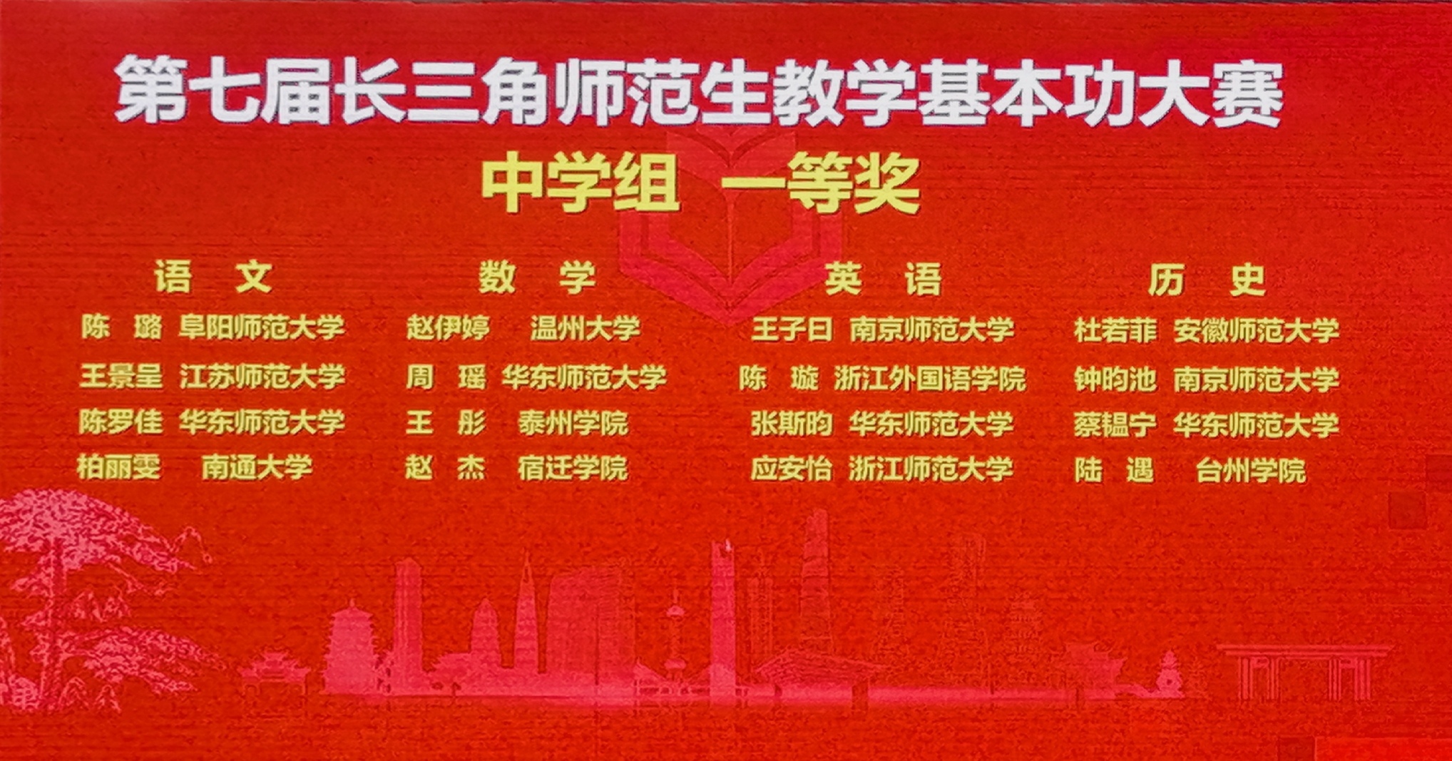 11月14日至16日,由安徽省教育厅、上海市教育委员会、浙江省教育厅、江苏省教育厅主办,长三角教师教育联盟协办,安徽师范大学承办的第七届长三角师范生教学基本功大赛在我校花津校区举行。历史学院2023级历史学(师范)专业本科生杜若菲、陈志伟同学分获一等奖和三等奖。