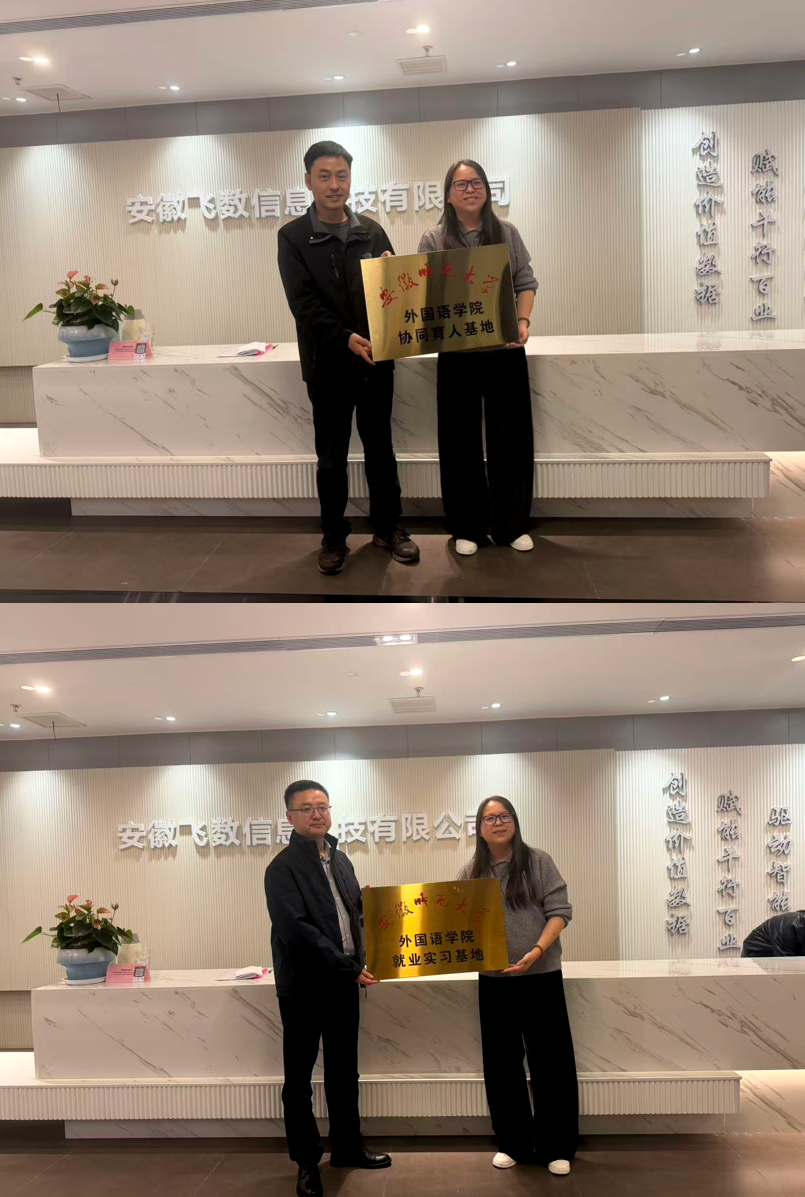 本次授牌仪式的举行,标志着外国语学院与安徽飞数的合作迈入新的发展阶段。学院将以此次合作为契机,持续深化“语言+技术”的人才培养改革,通过场景化实践、项目式协作等创新形式,打通校企育人通道,着力培养具备跨文化沟通能力与数智素养的复合型外语人才,为服务国家和区域发展战略,助力行业发展注入新动能。