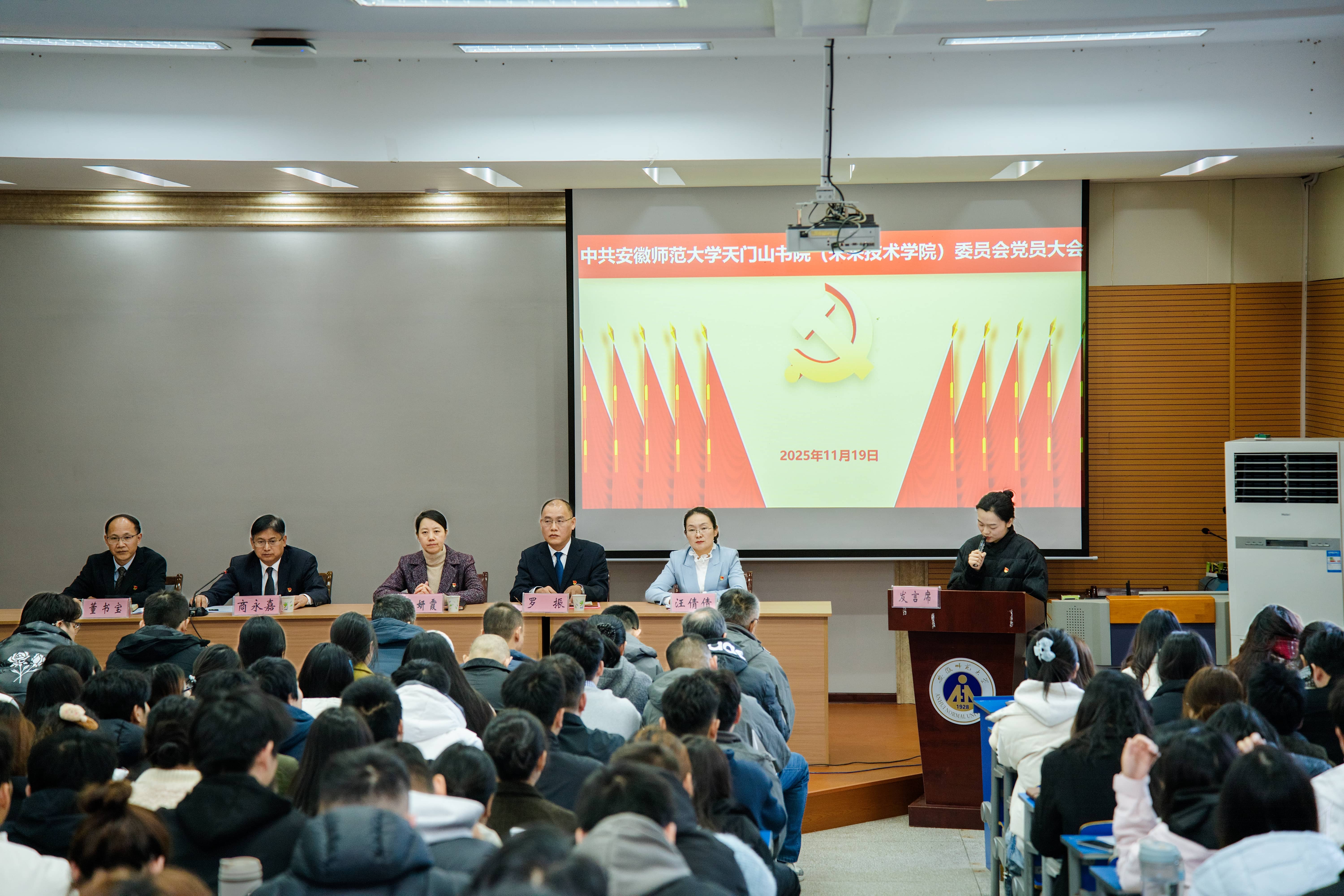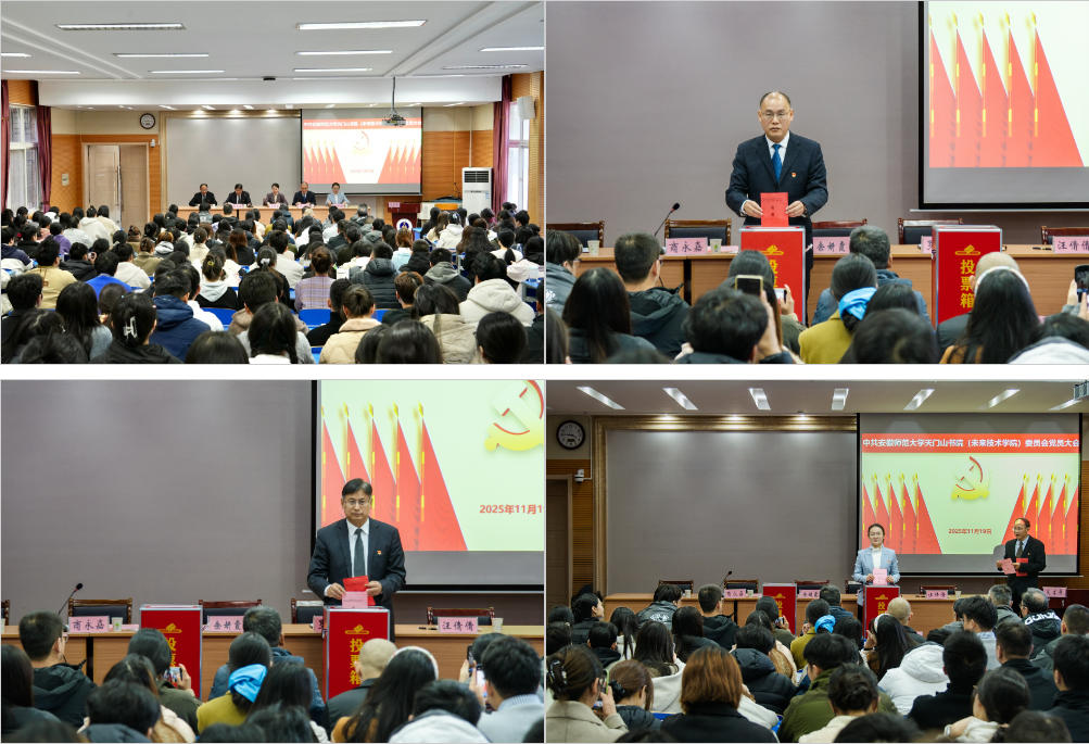 11月19日下午,中国共产党安徽师范大学天门山书院(未来技术学院)委员会第一次党员大会在图书馆报告厅举行,校党校常务副校长、党委组织部副部长余妍霞出席会议并讲话。天门山书院(未来技术学院)党委书记罗振作工作报告,大会选举产生了第一届中共安徽师范大学天门山书院(未来技术学院)委员会“两委”委员。书院党政领导、全体师生党员出席本次大会,会议由院长商永嘉主持。