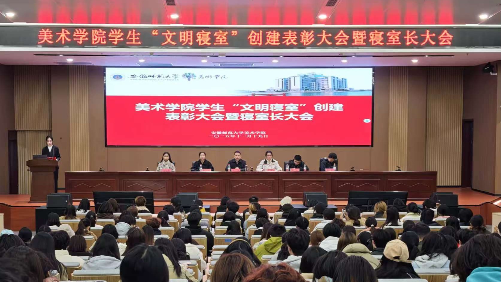为强化学生寝室文明建设,提升寝室长履职能力与责任意识,11月19日晚,美术学院在文典楼西侧裙楼报告厅召开“文明寝室”创建表彰大会暨寝室长大会。学院党委副书记李进、各年级辅导员及全体寝室长参会,共话寝室建设与发展。