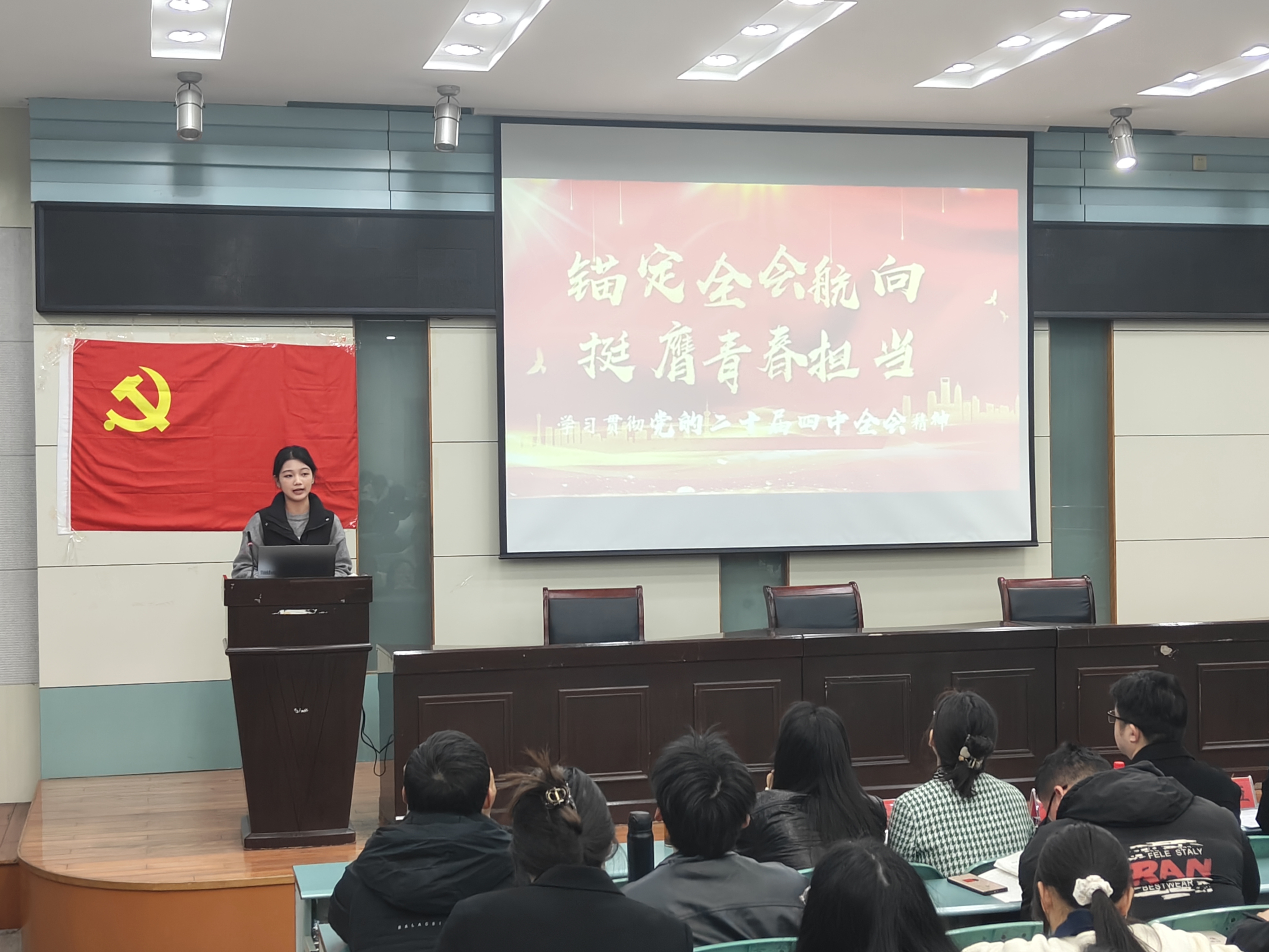 为学习宣传贯彻党的二十届四中全会精神,引导广大青年奋进“十五五”、建功新征程,奋力书写为中国式现代化挺膺担当的青春篇章,11月23日下午,地理与旅游学院在实验楼101报告厅举行“学习贯彻党的二十届四中全会精神”微党课大赛。学院党委副书记钱程,本科生党支部书记、辅导员代表参会并担任评委,第19期学生党员教育培训班和第70期入党积极分子培训班学员到现场观摩学习。