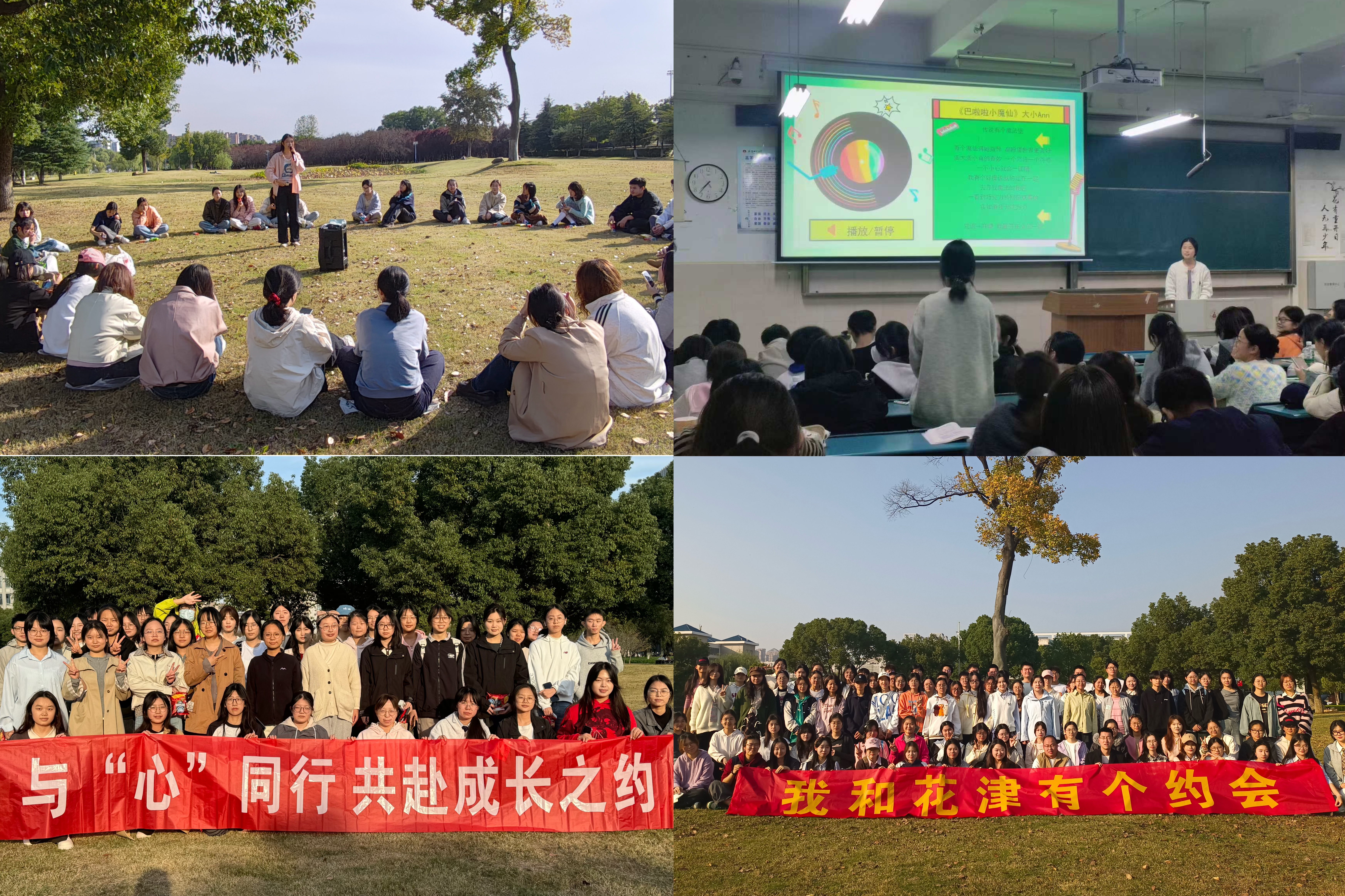 此外,学院还注重将心理教育与美育、体育深度融合,落实学校“艺体类心理解压团体辅导活动”要求。各班级通过电影赏析、户外拓展等形式丰富教育载体,放映《心灵奇旅》《头脑特工队》等影片,引导学生在光影中探索自我认知与情绪管理;开展“我和花津有个约会”户外主题活动,设计“Bingo 签名”“团体接力赛” 等环节,让学子在秋日暖阳中释放压力、增强集体归属感;24级汉语言文学 5 班搭建 “积极心理暗示墙”、设置 “心灵树洞” 信箱,25级开展“情绪盒子”匿名祝福传递活动,以多元形式为学生提供情绪宣泄与情感寄托的平台。