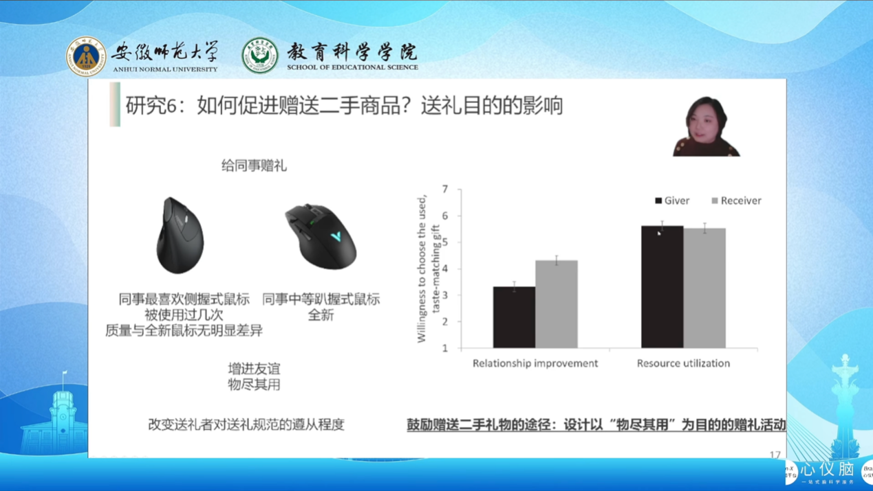 陆静怡教授演讲的题目是“送礼送不到心坎里:礼物赠予中的送礼者-收礼者偏好不匹配”,她所带领的团队基于8项设计严密的自然实验和实验室实验,在日常交往领域分析礼物赠与者和接受者偏好的不一致,并且这种偏好为什么不一致以及这种效应在哪些情境中会出现或者消失,该研究对二手交易平台的运营具有重要的启示作用。