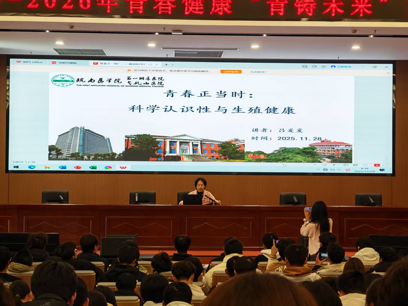 专家联袂开讲,共筑校园防艾健康防线。结合今年防艾主题,11月28日下午两场专题讲座在花津校区文典楼报告厅举行,各学院400余名学生代表参加。芜湖市疾控中心性病艾滋病预防控制科科长方艳姣从专业防控角度,系统阐述了艾滋病的基本知识、传播途径和预防措施。弋矶山医院吕爰爰医生则从临床医学角度,带来了“青春正当时:科学认识性与生殖健康”的专题讲座。两位专家结合专业知识和实际案例与学生进行了深入交流,现场气氛热烈,同学们纷纷表示讲座内容科学实用,有效消除了认识误区,增强了自我保护能力。