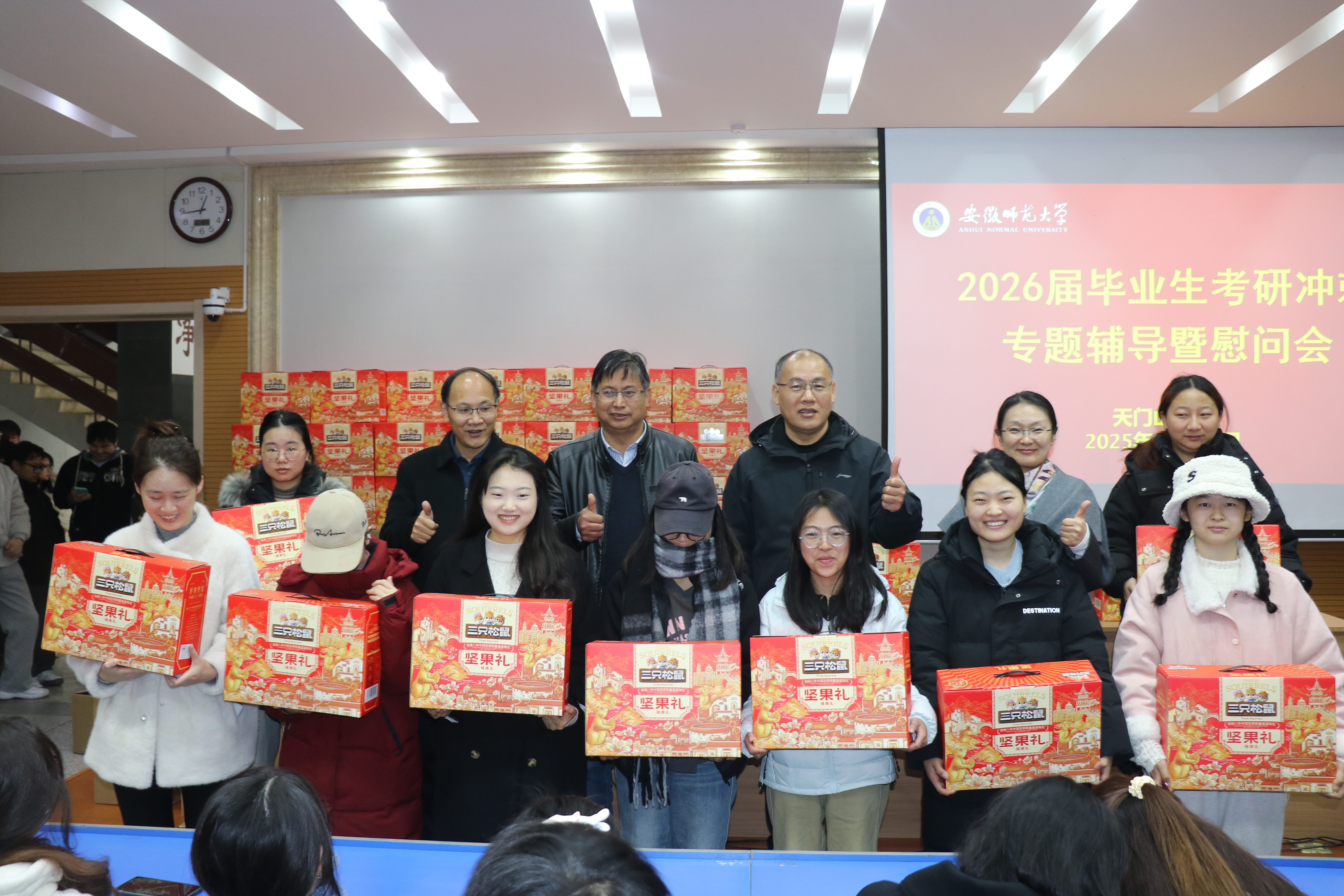 活动最后,书院领导共同为全体考研学子发放了精心准备的慰问礼品。一份份满载着鼓励与祝福的礼物,不仅传递了书院的温暖,更极大地提振了学子们的士气,坚定了他们奋力拼搏、勇创佳绩的决心。