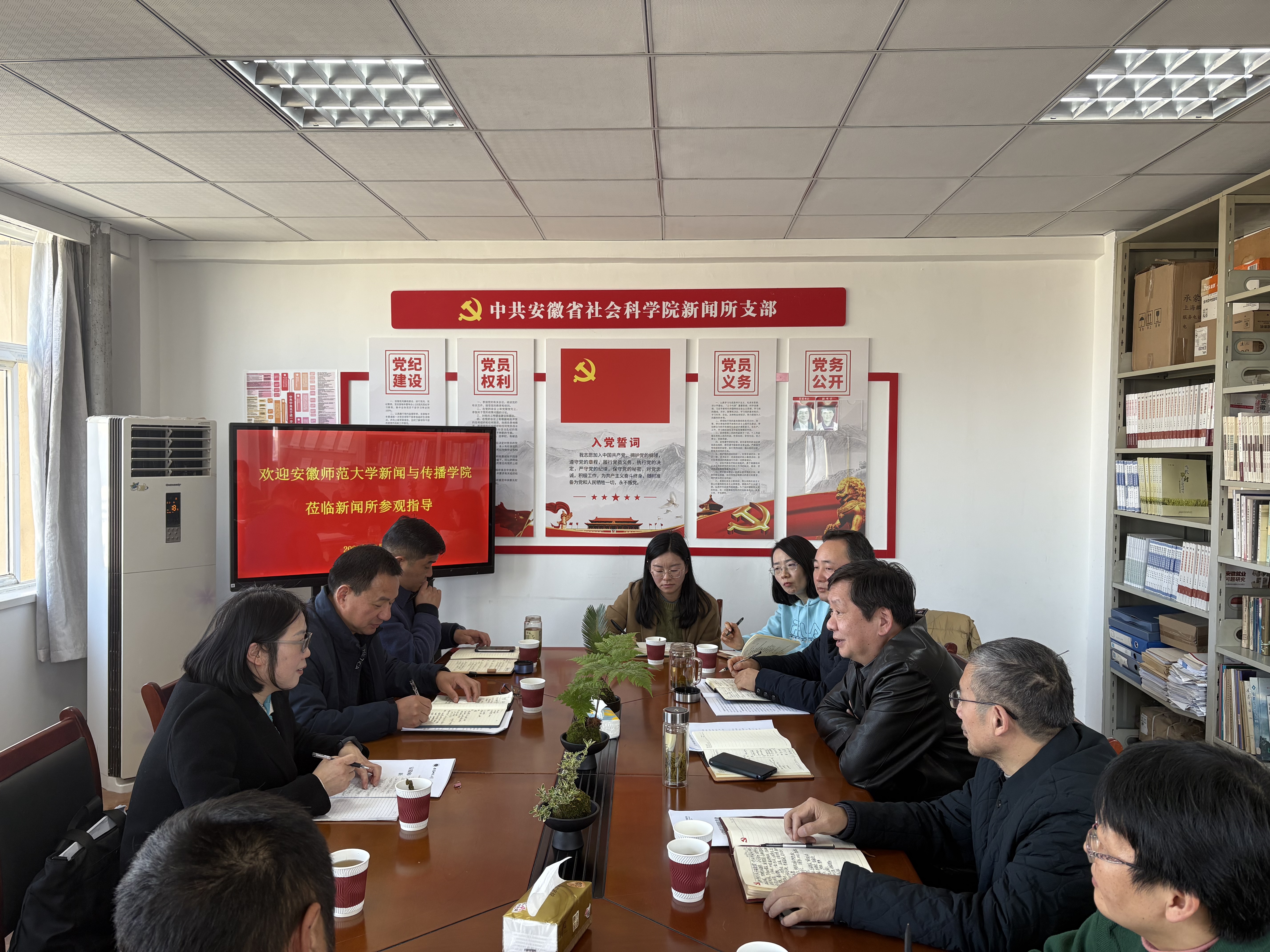 上午,学院一行到访安徽省社会科学院新闻与传播研究所,与社科院相关负责人及科研人员举行了专题座谈。省社科院副院长胡靖出席座谈会,社科院新闻与传播研究所全体人员参加座谈。座谈会上,马梅向参会人员介绍了新闻与传播学院的建设情况及“十五五”期间的重点工作清单,回顾了社科院新闻所与新传学院过往良好的合作基础,并就未来双方在学科建设、课题协作与人才培养等方面的共建路径提出了设想。