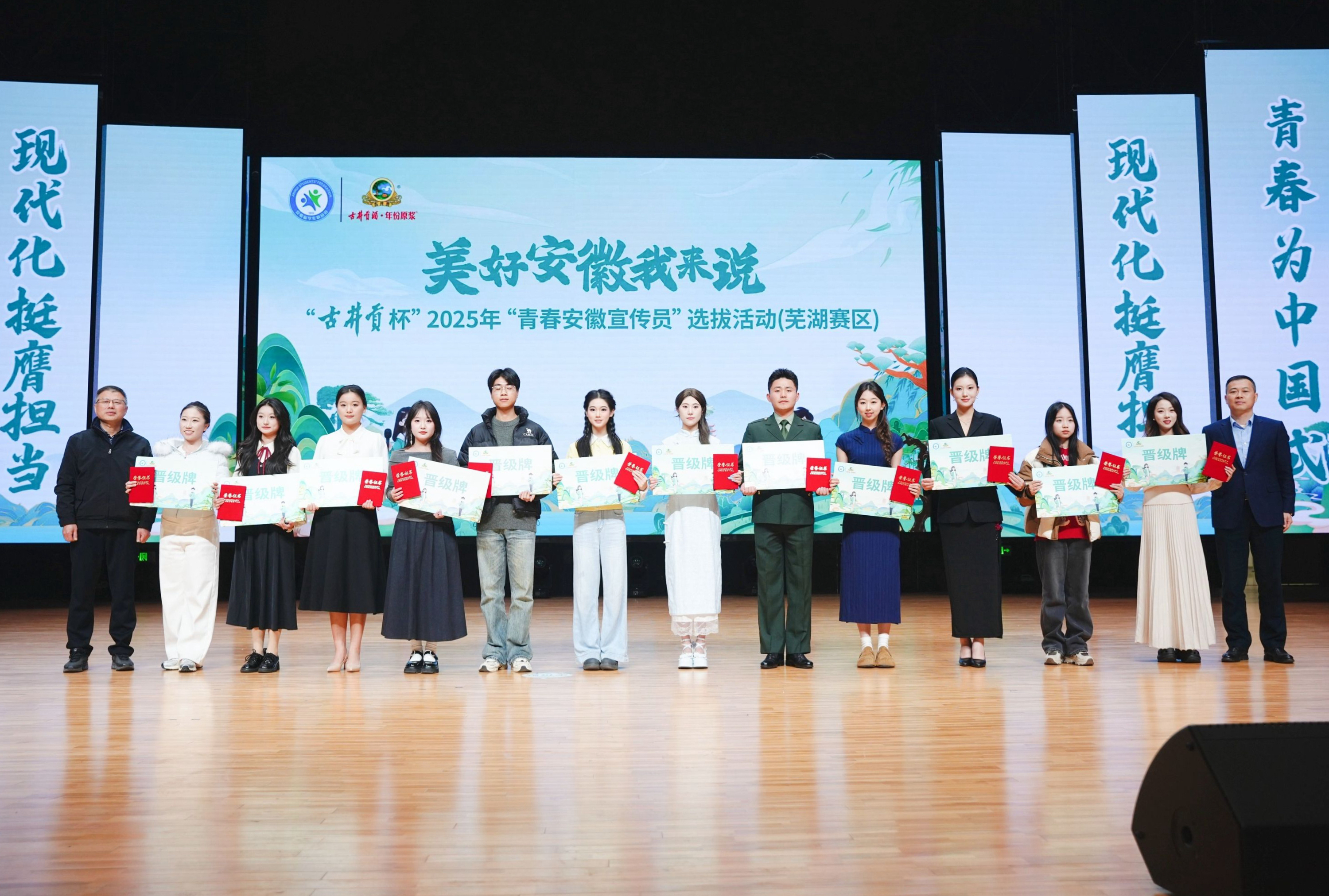 12月7日,“古井贡杯”2025年“青春安徽宣传员”选拔活动(芜湖赛区)复赛在芜湖学院艺术中心圆满落幕。2023级播音与主持艺术专业刘苗苗、赵思琦凭借扎实的专业能力与饱满的青春风貌,成功跻身赛区前十,不仅斩获“青春安徽宣传员”荣誉称号,还顺利拿到总决赛晋级资格,为学院赢得荣誉。