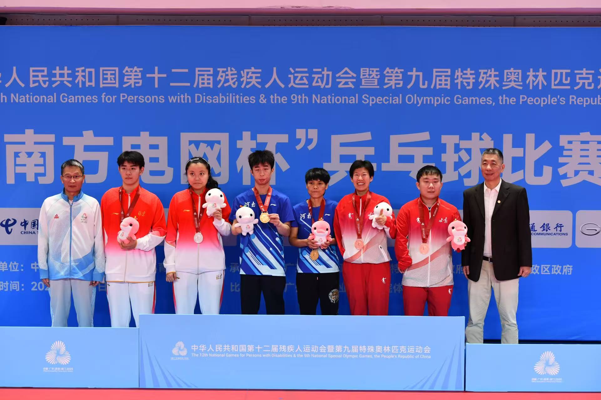 12月5日,中华人民共和国第十二届残疾人运动会暨第九届特殊奥林匹克运动会“南方电网杯”乒乓球比赛在广州开赛。赛事汇集了全国31支代表队的318名运动员同场竞技。我校体育学院2023级运动训练专业学生胡润涛奋勇拼搏,凭借精湛技艺,最终荣获混双冠军、男团季军、男双季军及男单第四名的优异成绩,充分展现了师大学子的卓越风采。