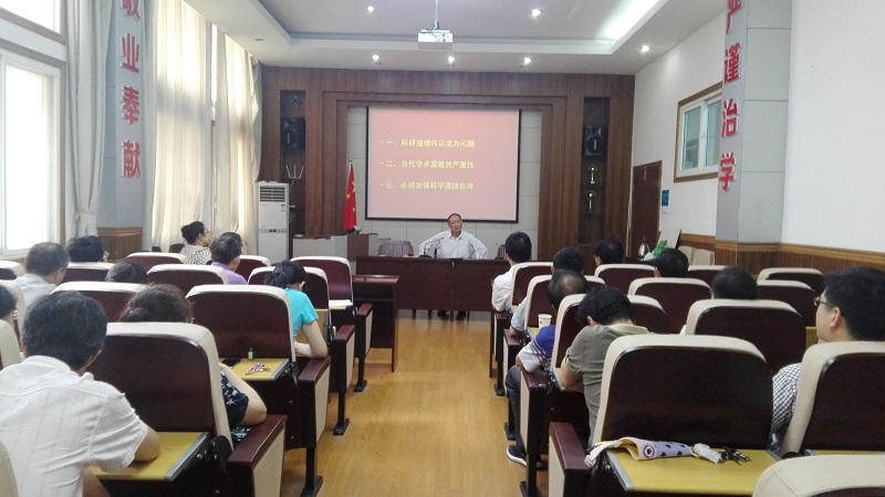 6月29日下午,应我院邀请,马克思主义学院退休老师陶富源教授在院一楼报告厅作了题为《弘扬科学道德,遵守科研纪律》的专题报告,全院教职工参加了此次报告会,院党委书记蒋学波主持会议。报告会围绕“科研道德何以成为问题、当代学术腐败的严重性、必须加强科学道德自律”三个主要问题展开,陶老师谈古论今,以古代的李时珍、徐霞客为例,讲述了科学研究从古代的个人兴趣演变为当今的社会事业的过程。在当今以科学技术作为第一生产力的知识社会,科学研究在推动社会经济发展的作用中所占比例越来越高,它在改变科研人员命运的同时,也带来了巨大的利益诱惑,部分人把它作为追名逐利的手段,心态也已经不正常甚至扭曲。于是,高校学术造假、学术腐败问题随之而来,已经成为学术“毒瘤”。报告中,陶老师引经据典,通过中外大量学术腐败的例子告诉大家,学术造假、学术腐败需要付出沉重的代价,我们需要长期的努力,在制度上更加完善。陶老师还现身说法,谈了自己当年淡泊名利、潜心研究、坚持学术诚信的经历,以及重要的尊重三原则,即尊重事实、尊重文本、尊重合作者。他告诫科研人员,要像珍惜自己的眼睛一样珍惜自己的学术声誉,特别是青年人,要抵得住金钱、名利的诱惑,要珍惜自己的才华!陶富源教授的讲座深入浅出,言辞诚恳富有感染力,在座教师无不为之动容,纷纷表示受益匪浅。