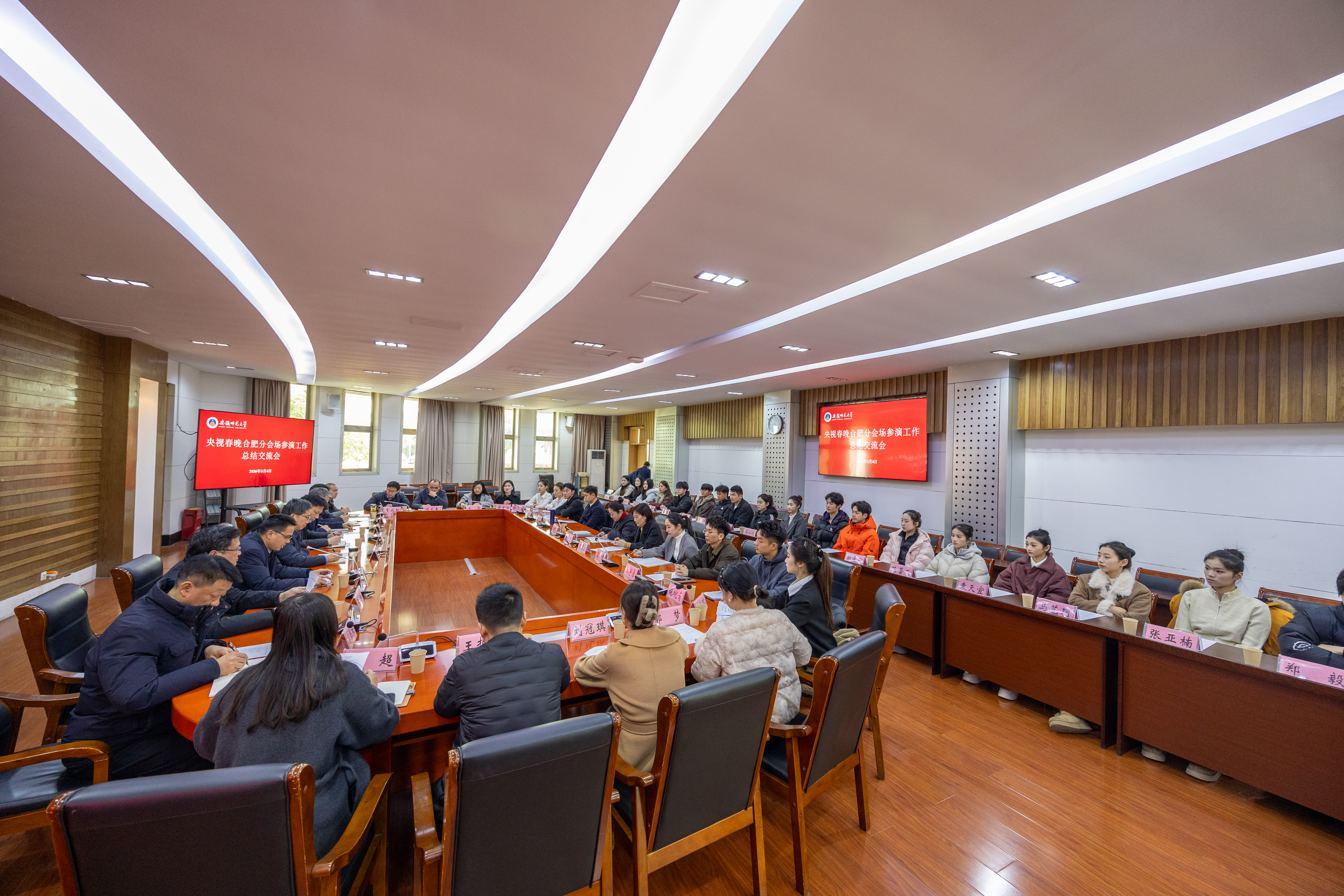学校召开央视春晚合肥分会场参演工作总结交流会,参演师生代表结合自身在排练、演出、宣传、保障等不同岗位的亲身经历讲述了参演过程中的难忘瞬间和深刻感悟,分享了将专业所学服务于国家重大活动的自豪与成长。会上,学校对参加中央广播电视总台春节联欢晚会合肥分会场文艺演出志愿服务的316名志愿者进行集中表彰,有关校领导为参演学生代表颁发“安徽师范大学优秀青年志愿者”荣誉证书,并在讲话中充分肯定了同学们无私奉献、担当有为的志愿服务精神。