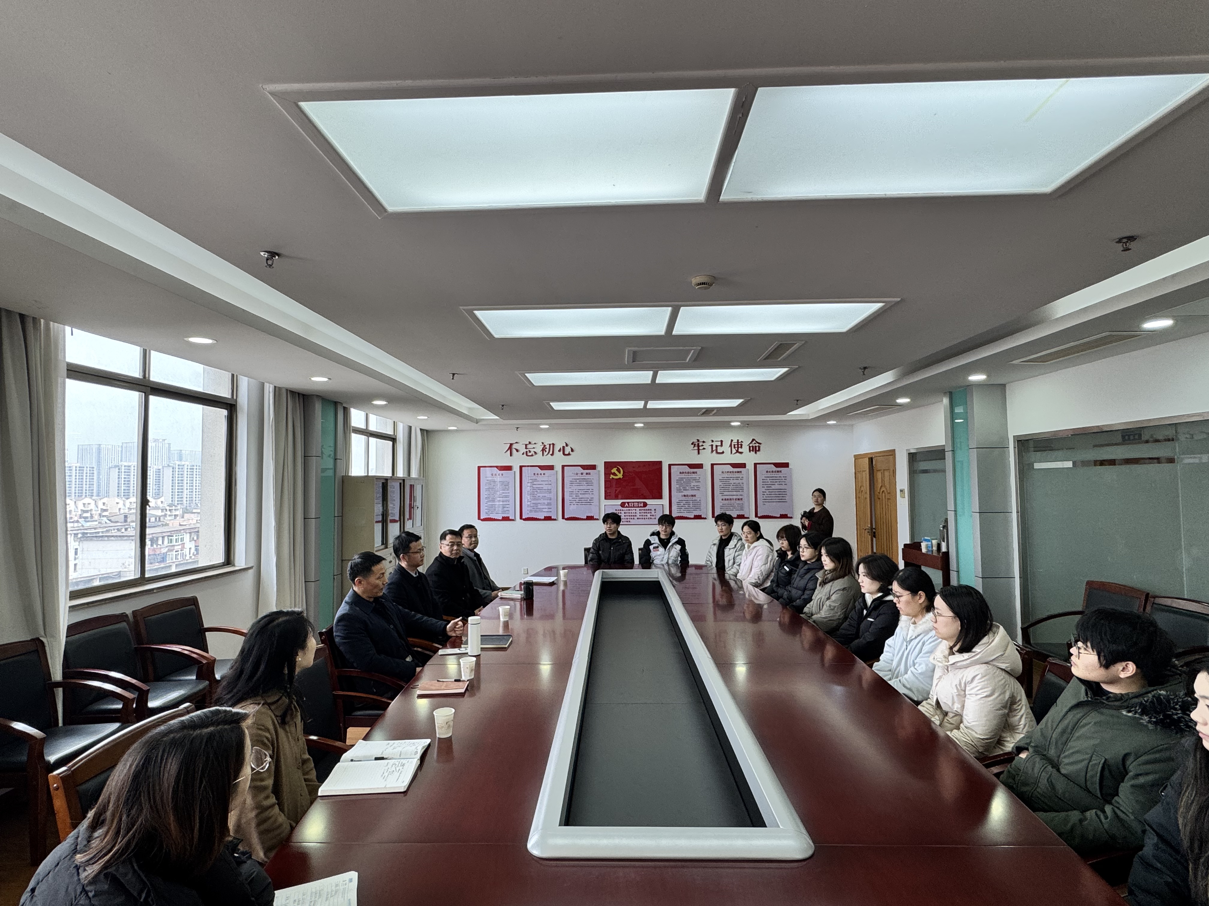 为全面落实教育部、最高检关于深化检校合作的部署要求,以高质效检校合作助力检察工作和教育强国建设高质量发展,3月4日上午,法学院党委书记张师帅、院长郭泽强、党委副书记张玉新、辅导员崔健一行赴芜湖市人民检察院开展合作交流座谈,并看望在岗实习学生。芜湖市人民检察院党组书记、检察长杨基富,党组成员、政治部主任王明,第一检察部主任陈烨,第四检察部主任闫勇,第七检察部副主任黄俊,宣教科副科长郭晨出席座谈会。会议由王明主持。