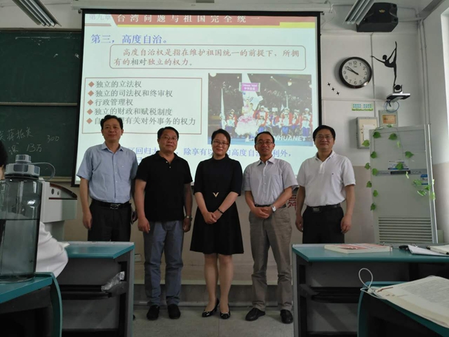 本次课堂,李卉老师讲授的专题是《台湾问题与祖国完全统一》。李老师首先带领同学共同朗读爱国诗人于右任的《望大陆》,激发学生的爱国情感导入课堂教学,并通过设置问题情景导入第一个问题的教学“为什么台湾和大陆必须实现统一?”随后,她又从资源状况、战略地位、历史情感和根本利益四个维度深入剖析,做到以理服人,全面回答了实现统一的必要性。李老师系统梳理了中国共产党人几代领导人为解决台湾问题做出的努力和探索,并详细讲述了“一国两制”理论的形成和基本内容。授课结束后,领导和老师们对李卉老师的课堂教学进行了评议。大家认为,李卉老师整个授课过程教态大方自然、内容娴熟、条理清晰、表达生动流畅,课件图文并茂,教学手段多元,充分调动学生参与互动的积极性。尤为值得赞赏是,李老师做到了紧跟时政、材料新颖,同时贯彻分类教学理念,结合体院学生知识背景举例说明,做到了通俗易懂,能深刻感受到李老师是在用力、用心、用情地植根于课堂教学,充分展现了我校青年思政课教师扎实的功底和理论的自信。