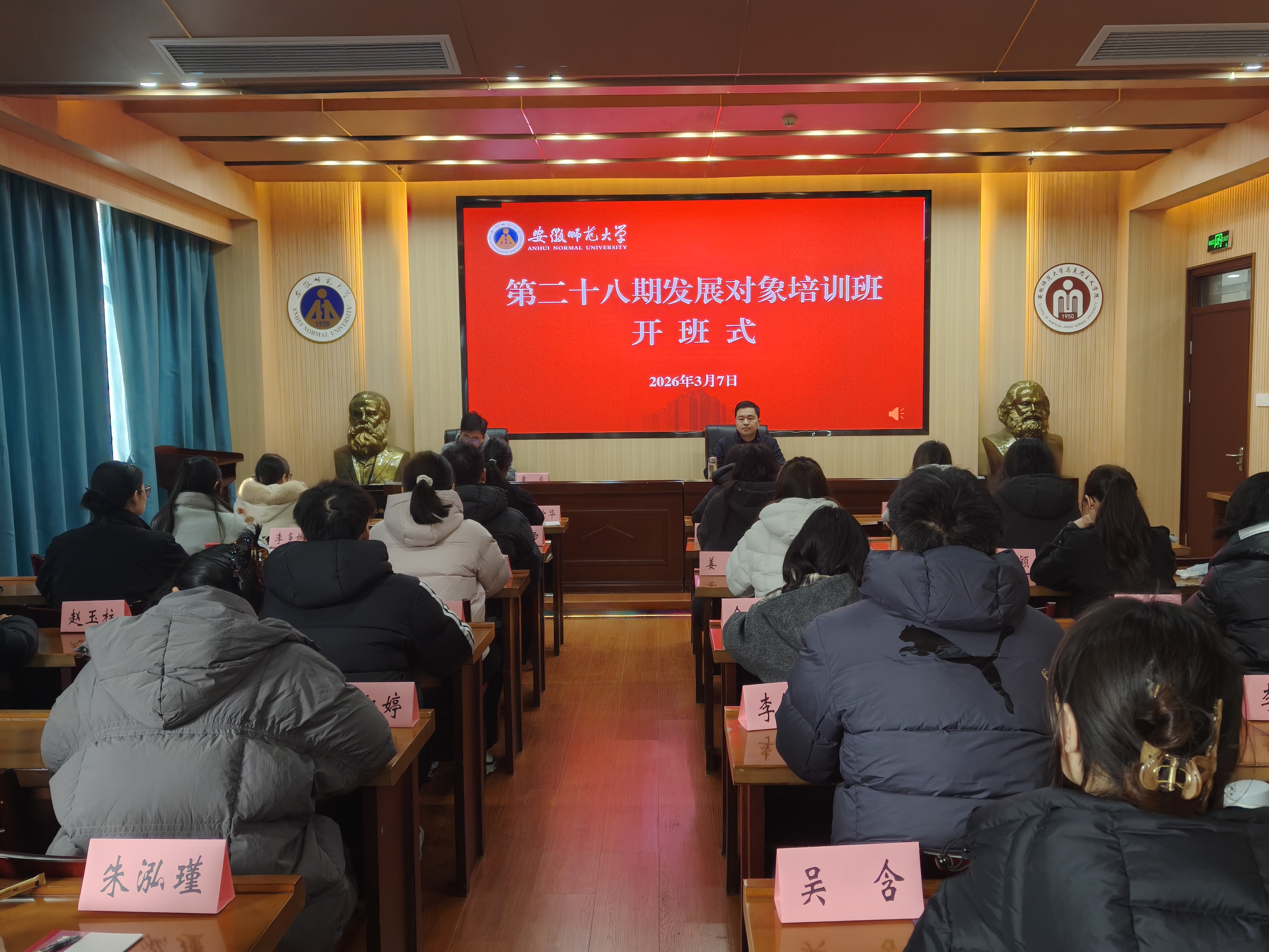 集中培训期间,李高举作了《严肃党内政治生活 锻造新时代青年先锋—深入学习贯彻关于新形势下党内政治生活的若干准则》专题讲座,马克思主义学院郭理副教授作了《回首辉煌路 奋进新征程—中国共产党历史专题学习》辅导报告,纪委办公室综合室主任刘飞讲授了《严明党的纪律 增强党性修养》专题课程,全体学员集体学习了中央党校(国家行政学院)经济学教研部教授赵振华讲授《“十五五”时期经济社会发展的指导思想、重大原则和根本保证》辅导报告,集体观看了《十四届全国人大四次会议在京开幕》《榜样10》和《皖江星火》等学习视频。3月8日晚上,培训班统一组织了结业考核。