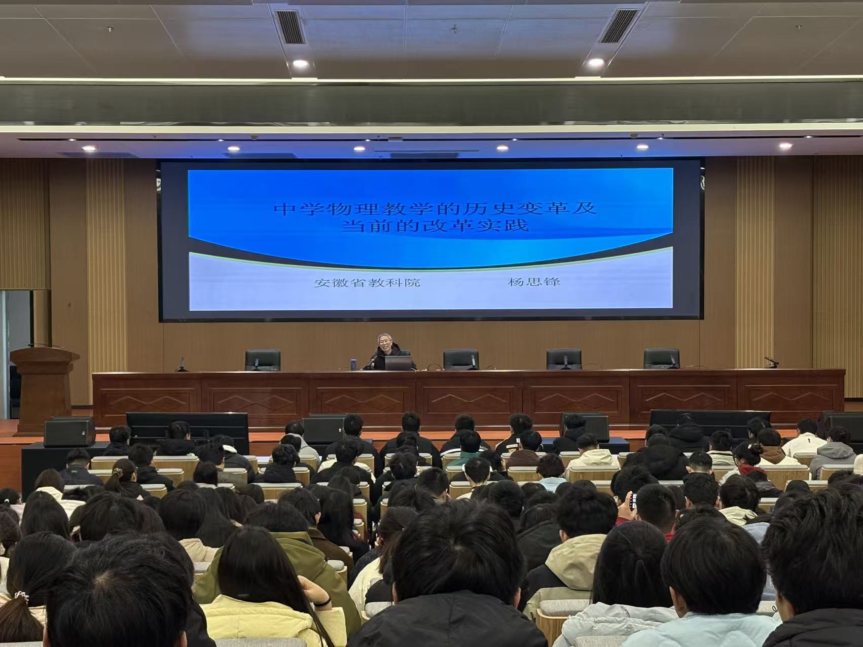 为深入推进基础教育振兴行动计划,进一步提升师范生教育教学能力,3月8日,物电学院在文典楼西裙楼三楼报告厅举行《班级管理指导与训练》课程暨师范生教育教学能力提升系列讲座。本次活动邀请安徽省教育科学研究院物理教研员、中学特级教师杨思锋,安徽省特级教师、省首届江淮好班主任、“马鞍山市名班主任工作室”主持人、正高级教师方升钱作为主讲嘉宾,开展了两场精彩的教学分享。学院院长吕建平、物理系副主任汪志荣、辅导员邹孝龙,2023级物理学(师范)专业全体本科生及部分学科教学(物理)专业研究生参加讲座。