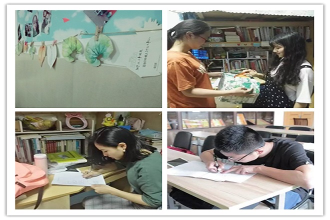 分享快乐,快乐就会变成两倍;分担痛苦,痛苦就会减少一半。回顾心路历程,拥抱最美好的自己。文学院各班级组织多种多样的活动,书写心路、分享美好心灵。15级汉语言文学师范专业的同学将自己的心语书写悬挂在班级的心灵寄语角,与他人分享;15级汉语国际教育专业的同学们则建起属于自己的“树洞”,将自己的珍贵记忆藏在其中,温暖自己;沟通与表达,是缓解压力、保持心理健康的重要途径,16级汉语言文学非师范和戏剧影视文学专业的同学通过“写封信给自己”的小游戏,进一步思考有关青春和成长的困惑,培养心理健康;院“薪火团校”班的同学们则通过青春故事的分享,将最真挚的成长感悟和体验化作心灵的故事,分享给广大同学。从心灵寄语角到心灵树洞,从给自己写一封信,到分享成长故事,同学们表达情真意切的心语,心灵也变得更美丽。