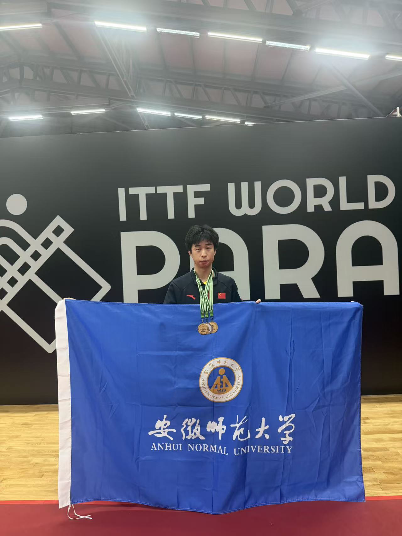 集训结束后,胡润涛即刻出征国际赛场。在3月26日至29日西班牙普拉塔达罗举办的2026年世界残疾人科斯塔布拉瓦国际运动会中,他奋勇拼搏,摘得双打铜牌、混双银牌。4月2日至5日,在土耳其亚罗瓦举办的ITTF世界残疾人未来赛事上,胡润涛再接再厉,凭借精湛技术与顽强斗志,一举拿下单打冠军、双打冠军、混双亚军,实现赛事荣誉大丰收,在国际舞台上展现了师大学子的强劲实力与昂扬风采。