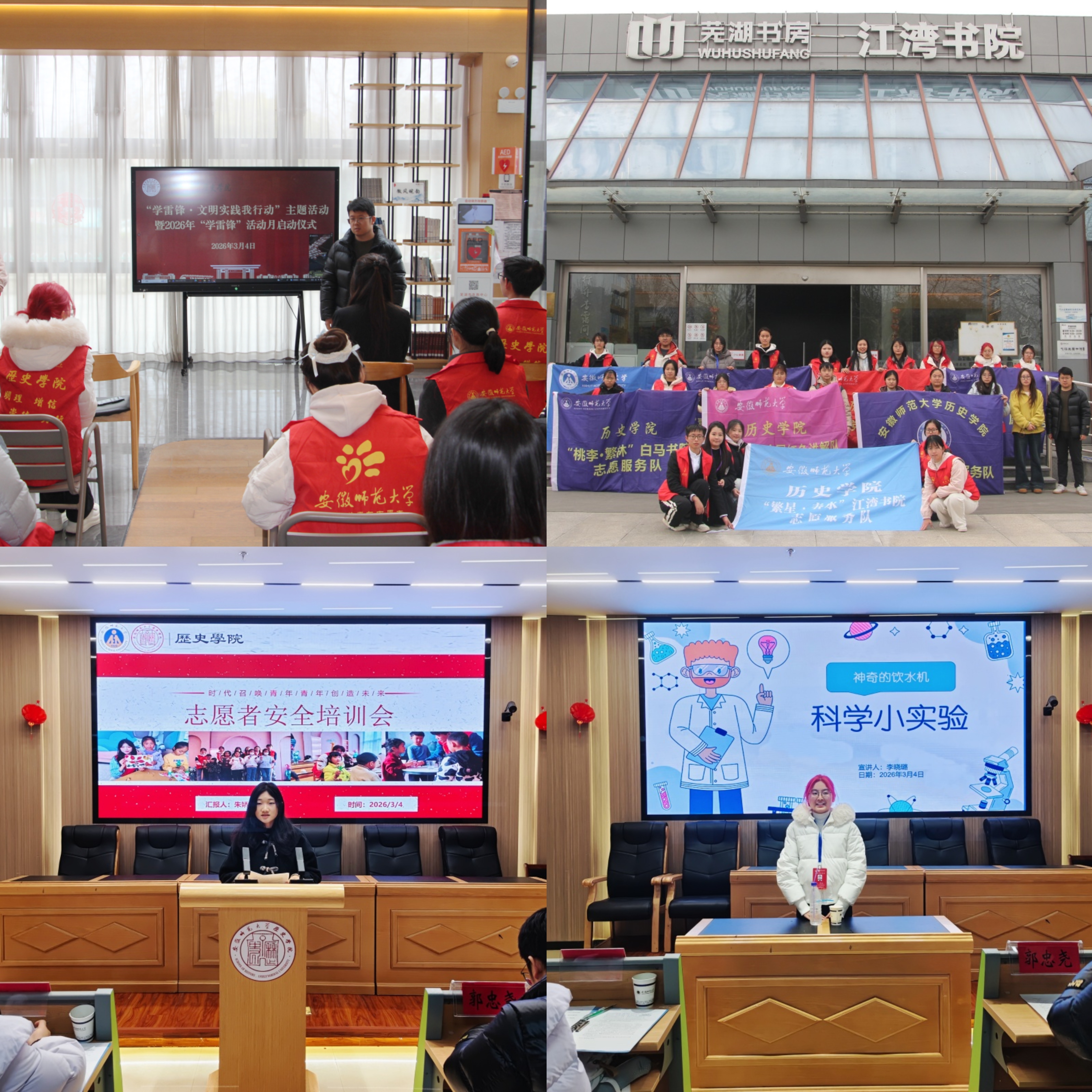 今年3月以来,历史学院积极将学雷锋志愿服务活动融入日常、化作经常,常态化组织9支志愿服务队联合芜湖城市书院、南瑞社区、王稼祥纪念园等20余家单位,深入开展50余次形式多样、内容丰富的校内外志愿服务活动,取得良好育人成效和社会反响。