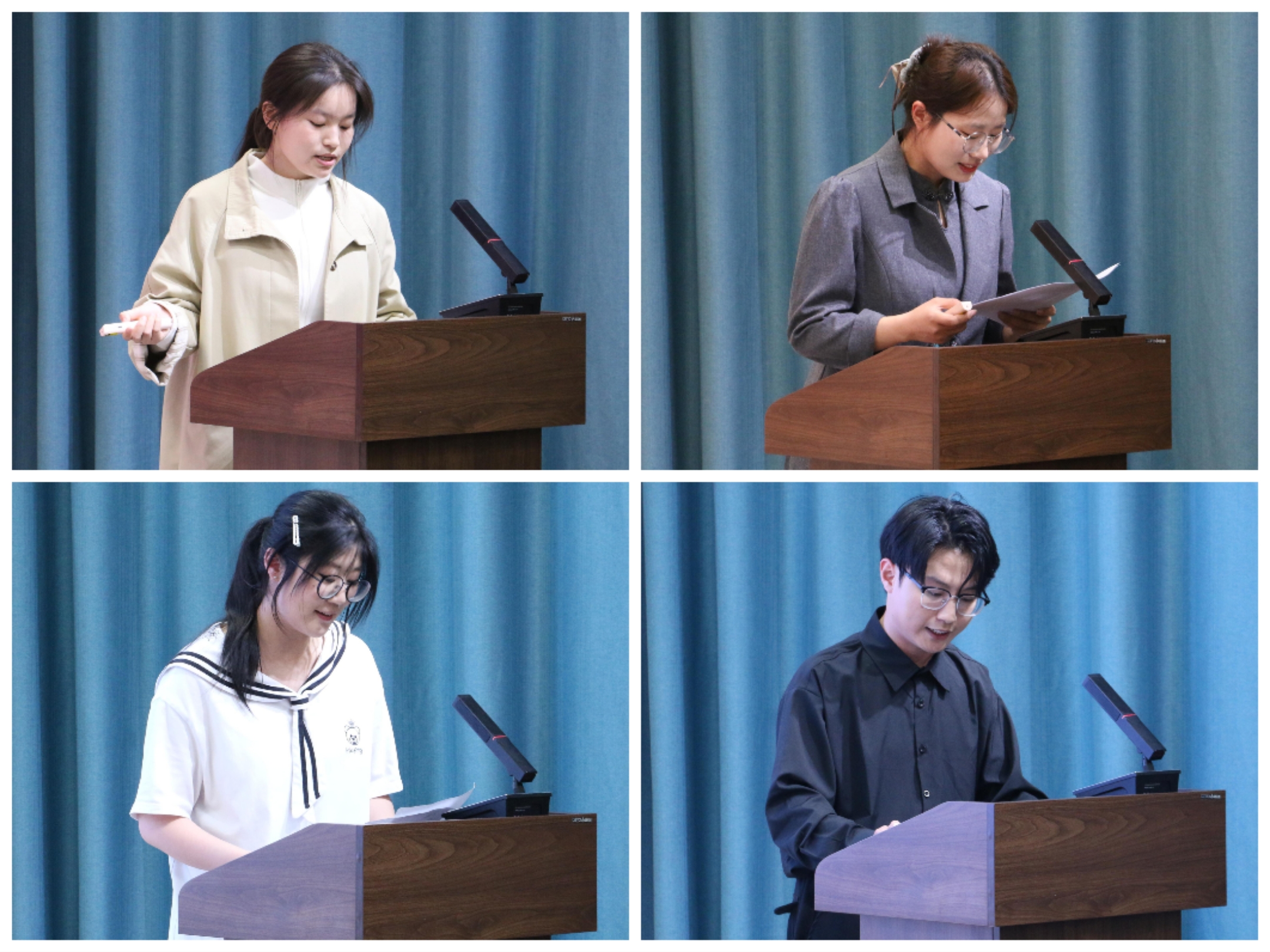 23名参评选手依次登台亮相,围绕思想表现、专业学习、社会实践、志愿服务、校园工作等方面进行全面陈述。他们结合自身成长经历,分享青春奋斗故事。2022级汉语言文学(师范)专业谢诗勤学笃行、成绩斐然,多次荣获校级及以上奖学金,以扎实学识诠释学子初心;2022级汉语言文学(师范)专业林楠躬身实践、知行合一,积极参与乡村振兴、文化调研等活动,在基层服务中彰显青年担当;2024级汉语国际教育专业李一诺热心公益、甘于奉献,长期投身社区志愿服务,用点滴行动传递温暖与力量;2024级汉语言文学专业康楷雯恪尽职守、主动作为,精心组织策划多项校园文化活动,展现出优秀的组织协调与统筹执行能力。选手们全面展现了过硬的专业素养与综合能力,彰显出乐于奉献、勇于担当、锐意进取的精神品格,充分体现了文学院学子严谨务实、积极向上的优良风貌。