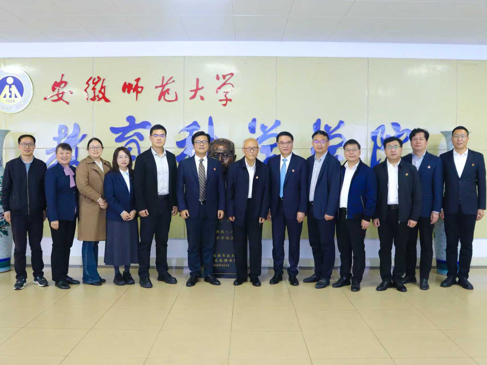 签约仪式结束后,吴文涛向集团一行表示欢迎和感谢,并从发展历程、师资规模、学生概况及社会服务四个方面介绍学院情况。随后,双方参会代表结合各自分管工作以及未来深度合作等事宜展开充分交流和讨论,并达成一致意见。最后,许国飞祝愿金桥教育集团与安徽师范大学事业繁荣、友谊长青,并合影留念。教科院将以此次签约为契机,延续双方过往情谊,通力合作,实现资源共享、优势互补、共赢发展。