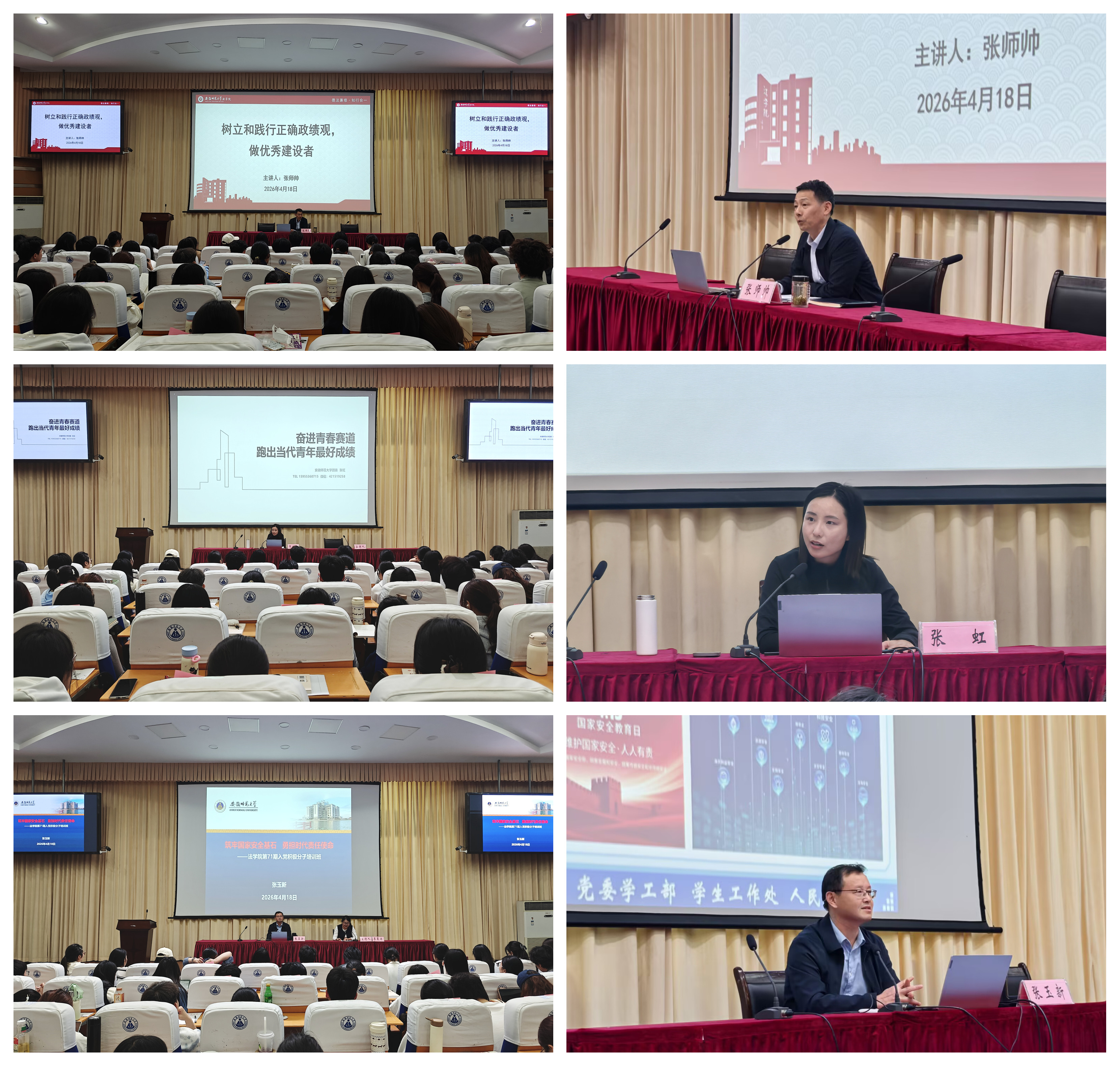 专题辅导环节,张师帅以《树立和践行正确政绩观,做优秀建设者》为题,阐释正确政绩观的理论逻辑与实践要求。校团委副书记张虹以《奋进青春赛道,跑出当代青年最好成绩》为题,激励学员勇担使命。张玉新作《筑牢国家安全基石,勇担时代责任使命》报告,增强学员国家安全意识。李宗楼以《加强党性修养 增强使命担当》为题引导学员锤炼党性。赵红围绕《深学笃行习近平总书记青年观》勉励学员贡献青春力量。郭理以《回首辉煌路,奋进新征程》为题讲授党史专题。影视教学环节,全体学员集中收看《榜样10》专题节目,从先进典型事迹中汲取精神力量。