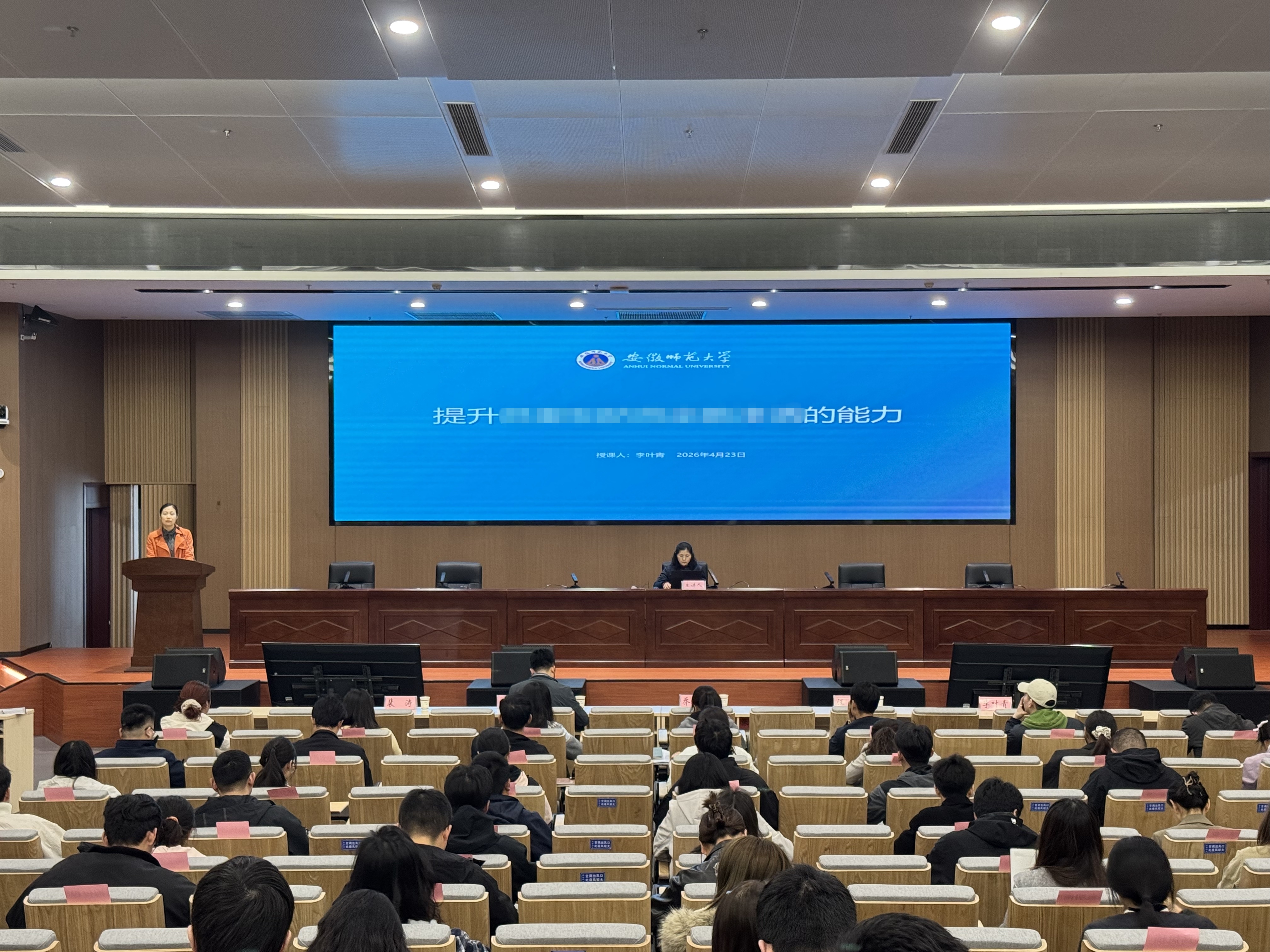 为深入落实立德树人根本任务,进一步提升辅导员队伍专业素养与履职能力,筑牢校园安全稳定防线,服务学生成长成才,4月23日下午,学校在花津校区文典楼西侧裙楼三楼报告厅举办“精准赋能”辅导员专题培训。全体本科生、研究生专兼职辅导员参加培训,培训由学工部副部长汪婕主持。