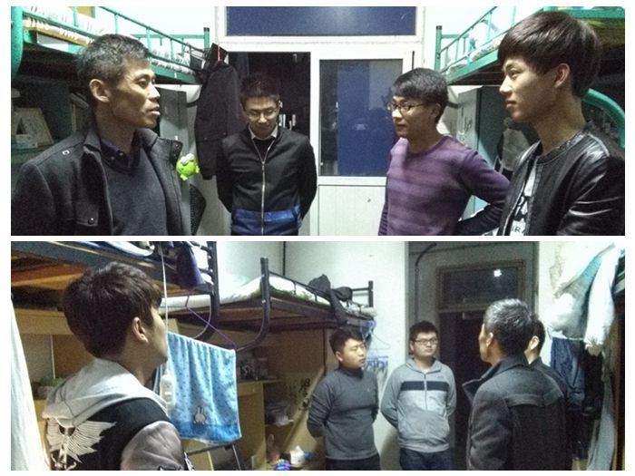 隐患排查——关爱学生促成长。为消除宿舍安全隐患,3月27日晚,院党委副书记梁齐军、团委书记张磊、辅导员周楠深入2013、2014、2015级本科生宿舍看望学生并且进行相关安全排查。梁齐军深入了解了学生的学习生活状况,并强调宿舍学习环境、生活环境对大学生健康成长的重要性,尤其强调了使用违规电器将会引发的安全隐患以及处分后果,叮嘱同学们不能存在侥幸心理,不可忽视安全的重要性。