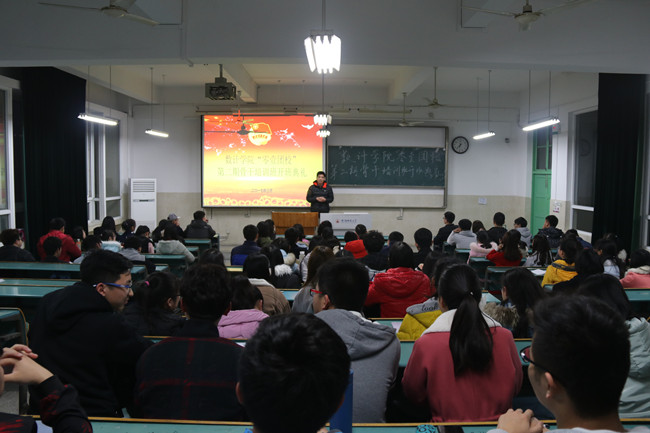 本网讯(数计学院 许昊)3月24日晚,数计学院第二期“零壹团校”学生骨干培训班开班典礼在花津校区教学楼2010506教室顺利举行。学院团委副书记许晓峰参加本次开班典礼,学院团委委员、学生会16级委员及16级各班级班长、团支部成员参加。开班典礼由许晓峰主持。