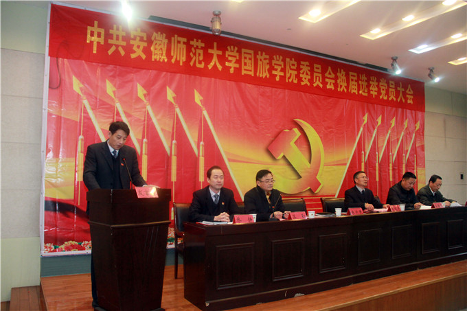 本网讯 (国旅学院 赵将 陈健)11月23日下午,中国共产党安徽师范大学国土资源与旅游学院委员会换届选举大会在国旅学院实验楼101教室隆重举行。校党委组织部副部长、人事处处长朱为民,国旅学院党委原书记、校审计处处长吴春雷,国旅学院党委原副书记、校基建处副处长罗振及民主党派和无党派人士应邀出席会议,学院全体教工和学生党员共计146名正式党员和46名预备党员参加了会议。大会由国旅学院院长苏勤主持。