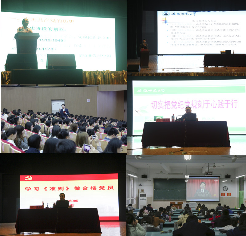 本期培训班紧紧围绕《中国共产党章程》、中央和学校发展党员工作的有关要求,合理设置教育培训内容,邀请了戴兆国、胡靖、高正礼、陈文兵、季爱新等专家领导就中国共产党的历史、社会主义核心价值观、党章党规党纪以及党内政治生活的若干准则等内容,集中在花津校区大礼堂举办专题辅导报告5场,在赭山校区、花津校区、皖江校区各开展党性教育专题视频教学3场以及带领学员开展自主学习。另外,培训班还充分利用新媒体优势建立小组微信群开展学习讨论。