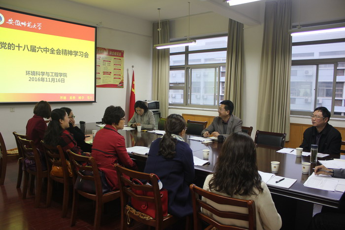 本网讯(环工学院党委) 11月16日下午,环境科学与工程学院召开党委扩大会议,专题学习十八届六中全会精神。学院党委委员和全体支部书记参加了会议。