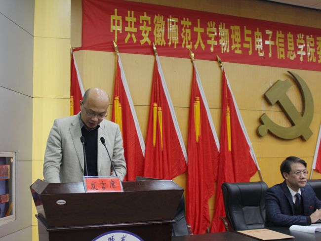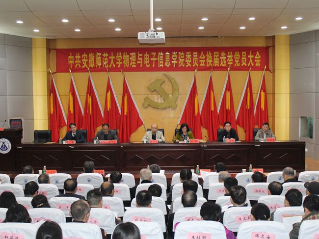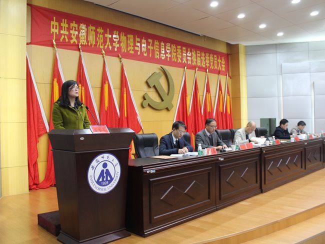 下午,中国共产党安徽师范大学物理与电子信息学院委员会换届选举党员大会在赭山校区田楼报告厅隆重举行。校党委组织部正处级组织员胡培亮、全院教工党员、学生党员、部分特邀民主党派和无党派人士代表出席了大会。会议由院党委副书记吴长义主持。
