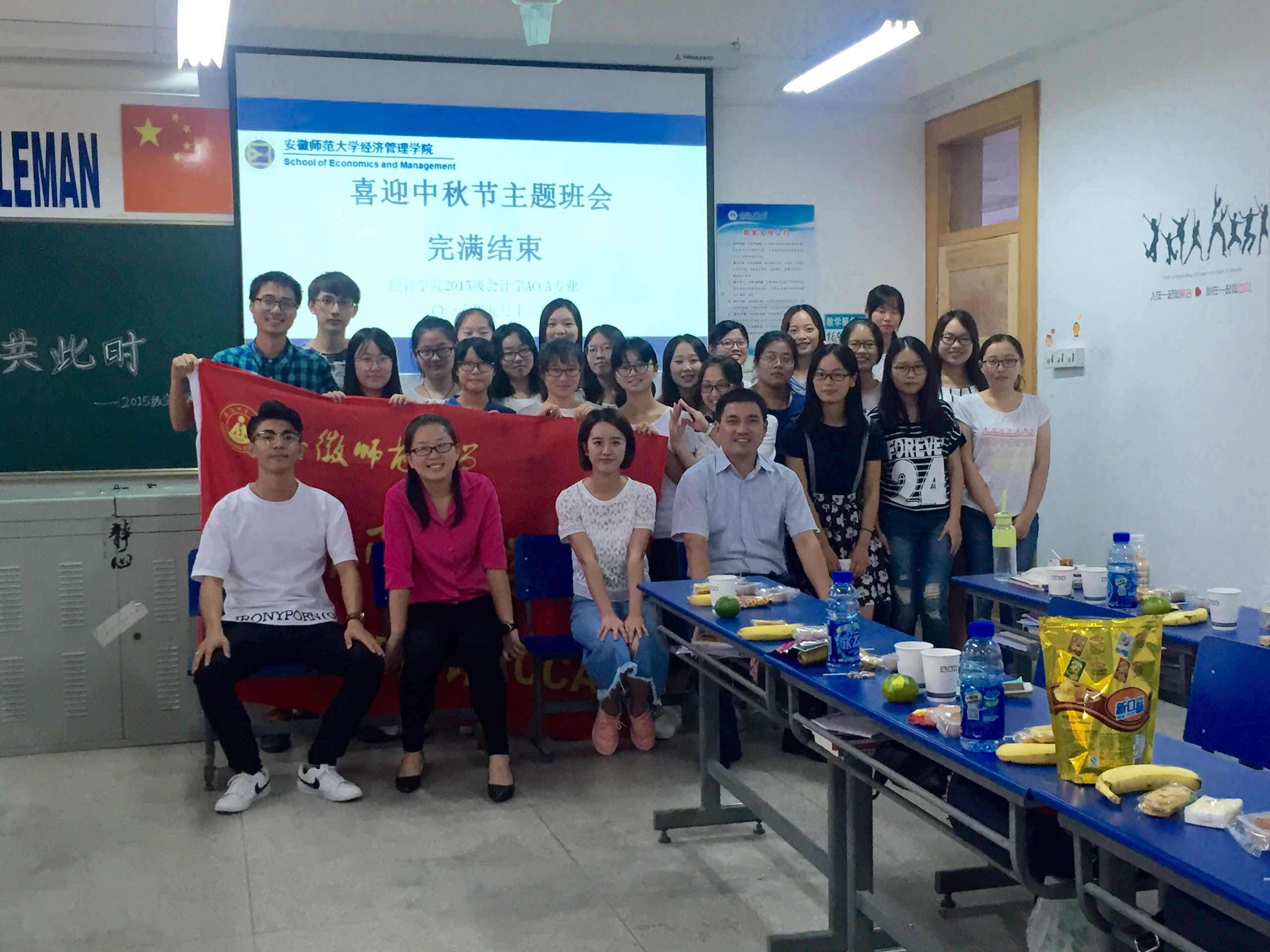 暖流在经管,温情不断传递。9月13日,2014、2015级各专业班级在固定教室举办了以“师生共话中秋佳节”为主题的班会活动,副院长马骥、专业课教师朱立冬、郭斌等出席了活动。