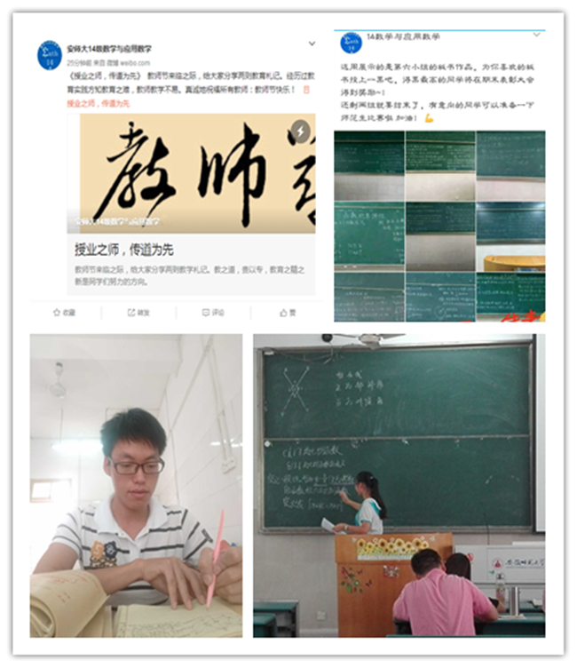 今年暑假,数学专业的师范生就接到一份特殊的暑假作业:走访一位老师,撰写一篇教育札记;开学返校后,在班级中主动分享。学院也结合暑期社会实践的义教活动,评选并推送社会实践优秀教育札记。作为数学师范生,课堂上勤于思考,学习真知识;课堂外投身实践,练就真本领。悉心培养,用心打磨。一次次板书设计,一次次微课练习,在提升师范生技能的同时,坚定师者的理想信念。通过分享扎根基层投身乡村教育的校友事迹,鼓励同学们报效祖国,努力成为党和人民满意的“四有”好老师。